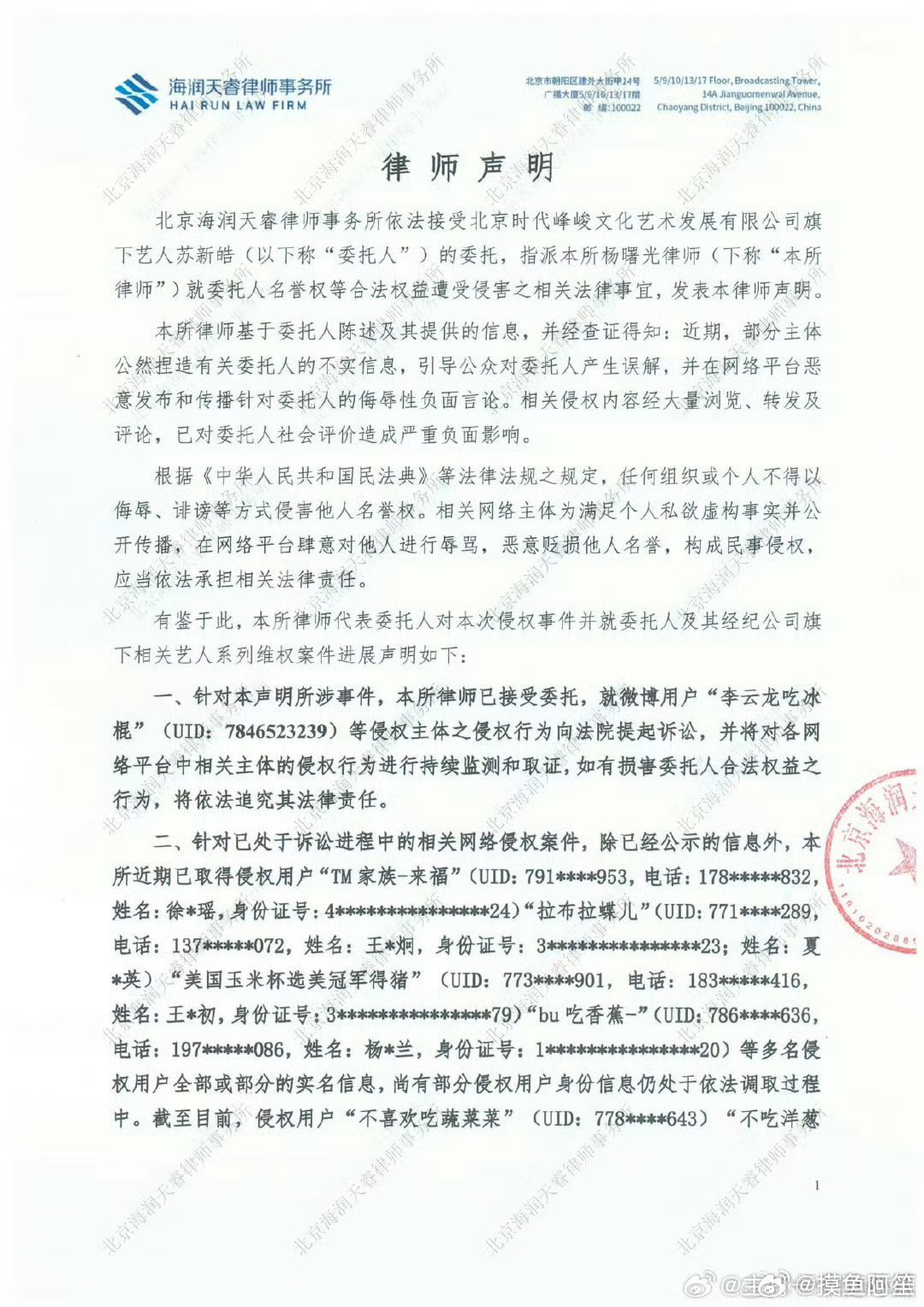 苏新皓委托律师事务所告黑维权,好像还是小孩子自己找的律师,互联网不是法外之地,支持维权[拳头]
