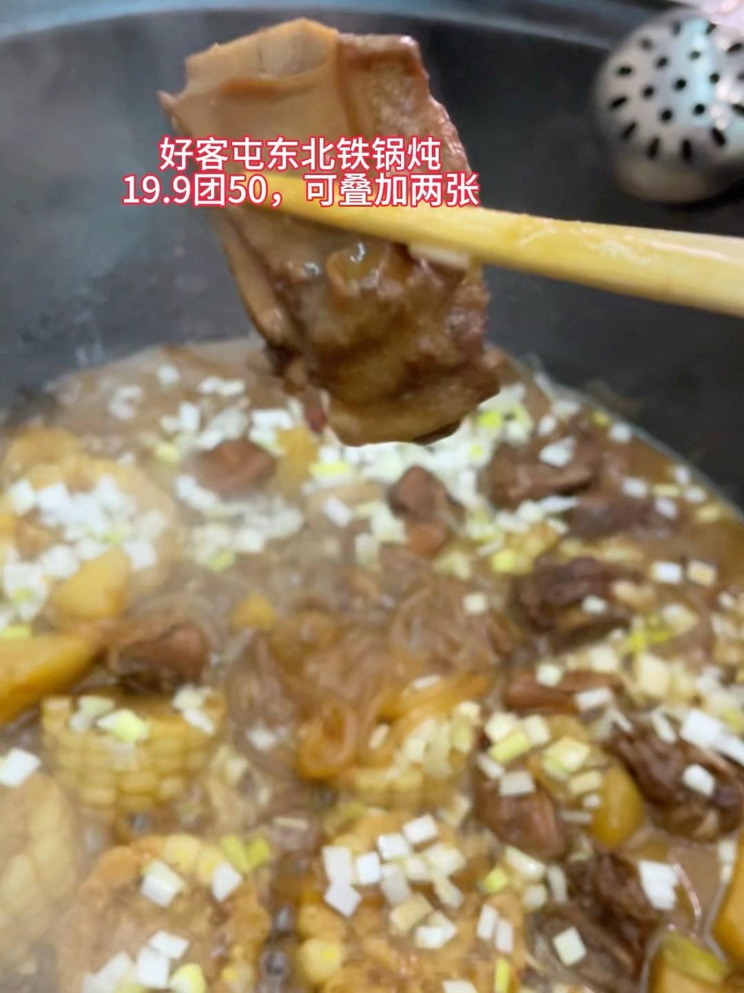 览秀城好客囤东北铁锅炖开业活动,19.9团50,可叠加两张,全场通用,速度囤!