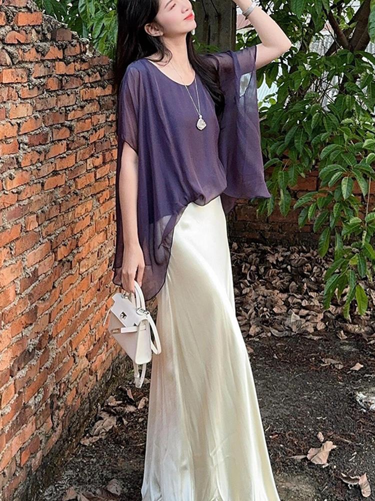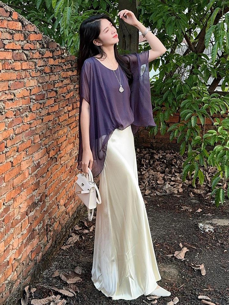 【轻奢紫韵】高端醋酸缎面,尽显女人味,上流社会气质之选,夏日必备套装。