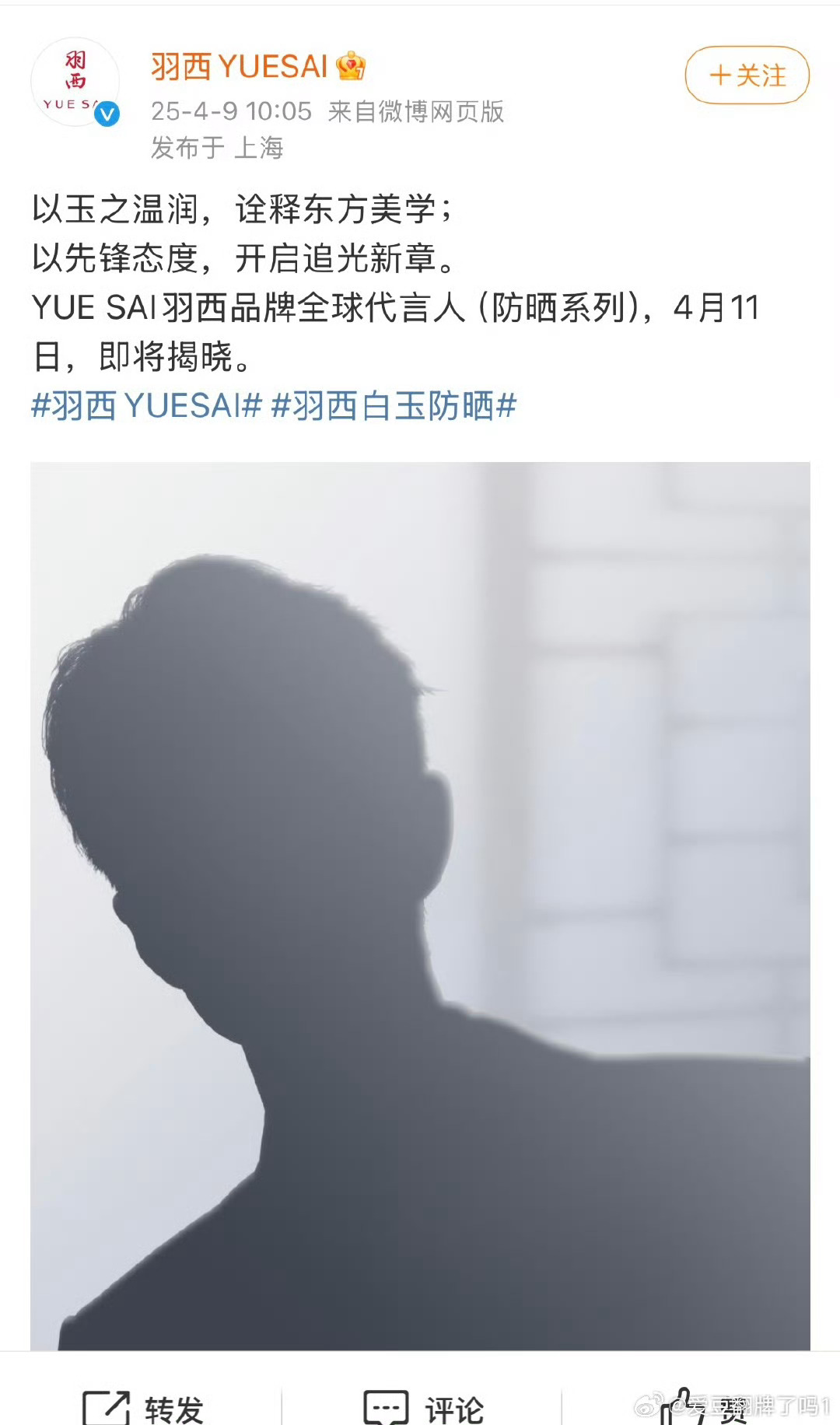 肖战羽西剪影预热肖战羽西yuesai品牌全球代言人肖战羽西yuesai品牌全球代言人,期待帅哥,哇