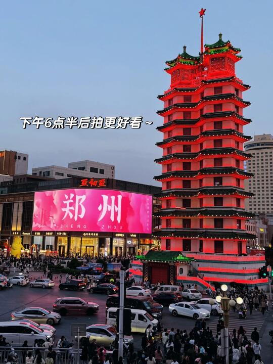 郑州地标二七纪念塔必打卡,白天拍复古风,晚上粉色灯光很美!德化街逛吃买特产,一条街的蜜雪冰城~