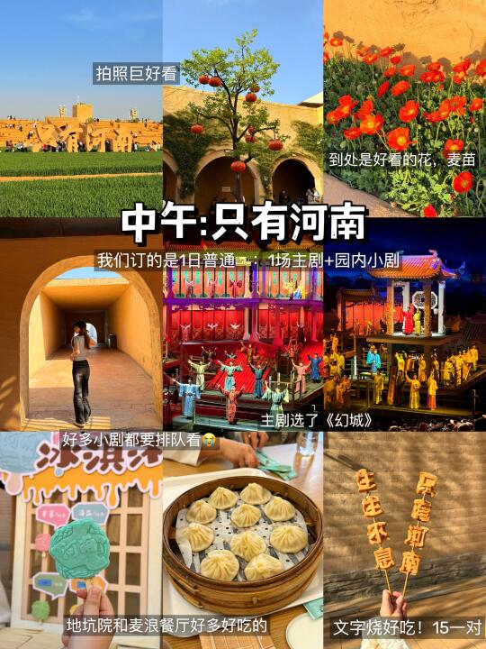 3个主剧场,21个小剧场,可以沉浸式体验河南五千年文明!1日票可以选1个主剧看,选了《幻城》,视觉蛮震撼的。这里的手创小店好多,还有文字烧、文创雪糕,黄色水咖啡,可以玩一整天[黄金薯R]