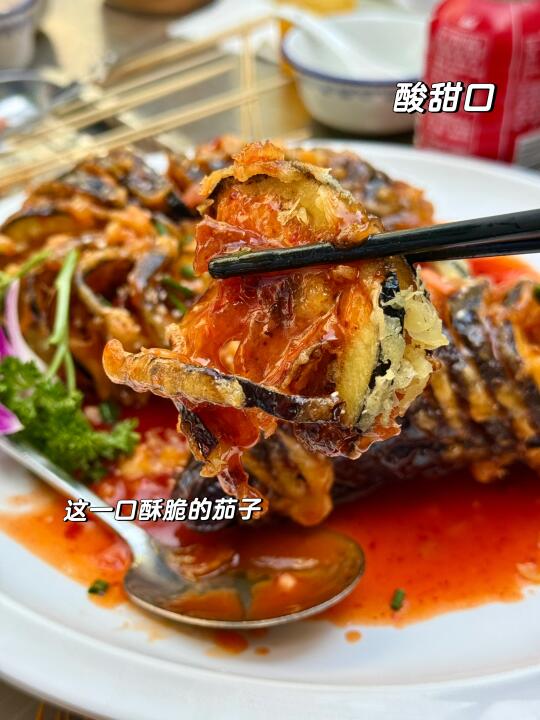 🧆鱼香茄龙:外壳酥脆,淋着酸甜口的芡汁,外脆里嫩的状态,但有点甜,比较容易腻到