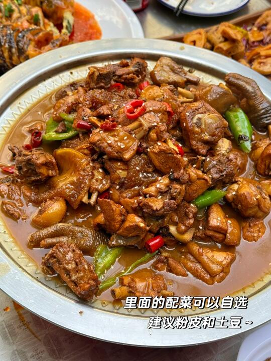 🍗大盘鸡:鸡肉好嫩,汤汁也很醇厚,我们加了粉皮超入味!吃完可以加面,面条是那种烩面的宽面很劲道