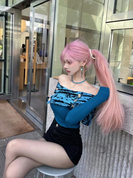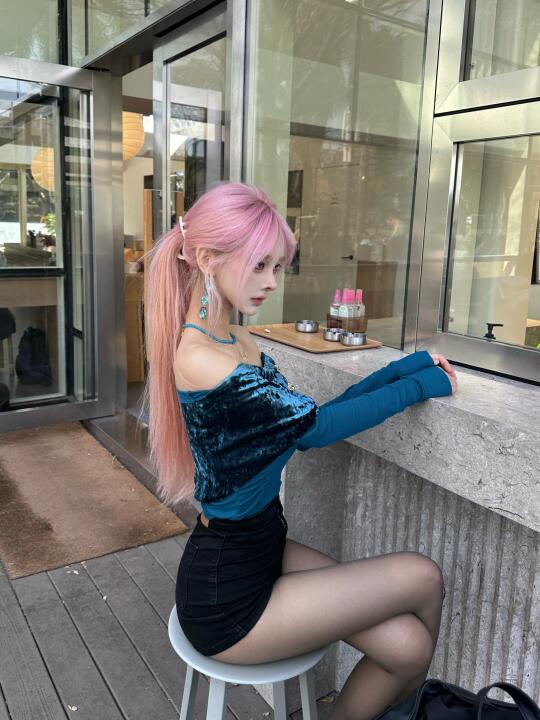 粉色头发 ootd 蓝色系 斩女 尝试一个新look