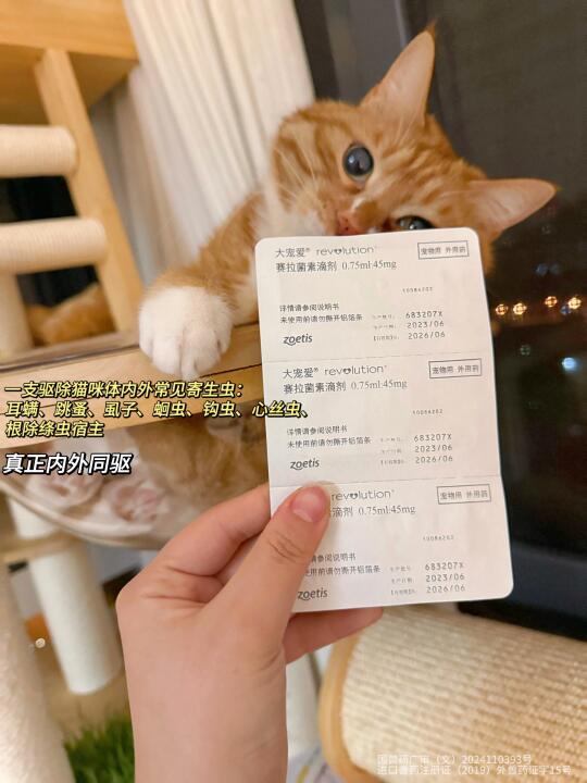 小米一直用的是大宠爱,上市18年的进口大品牌🎉小小一支就能解决体内外的寄生虫,还顺便解决了跳蚤、虱子这两个绦虫宿主,真正做到了内外同驱,不需要搭配别的药了,减轻小咪的肝肾负担👍