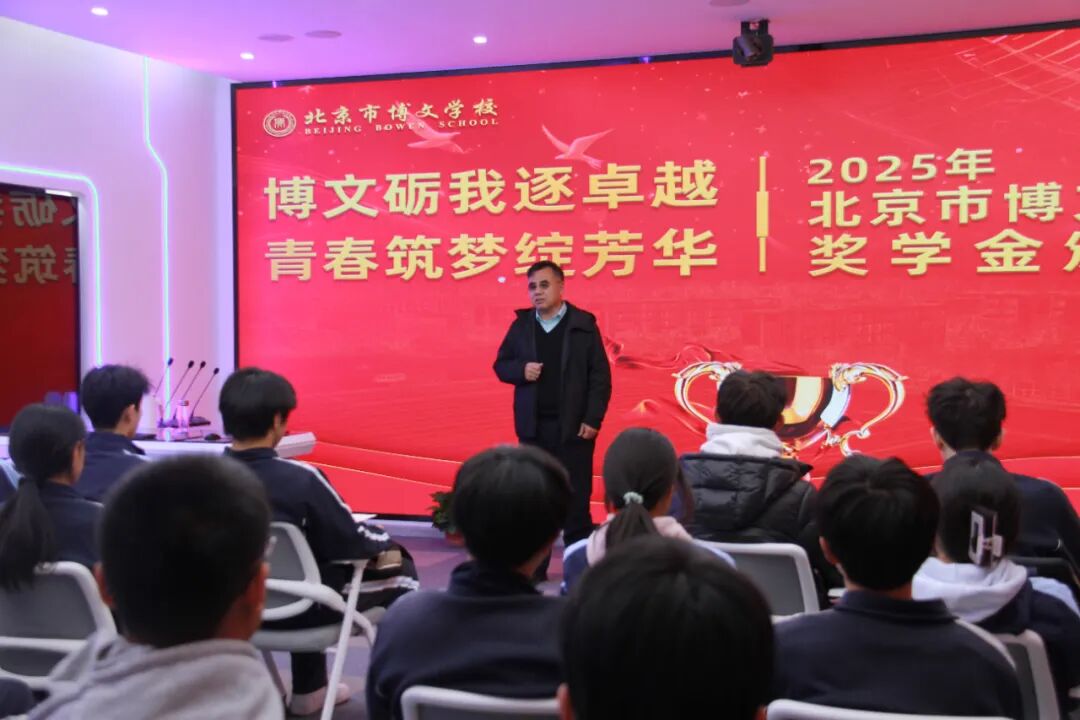 表彰有期,育人无期。奖状与奖学金的颁发,既是对 130 余位获奖个人与团体的致敬,更是对全体学子的期许。学子的进步与老师们的悉心指导密不可分,学校以 “做有温度的教育,办有关爱的学校”为指引,这份对学子的重视与关怀,正是点燃梦想的火种。愿获奖学子奋勇前行,全体学子以榜样为镜绽放光彩,北京市博文学校必将培育出更多全面发展的时代新人,让少年之志绚烂绽放!