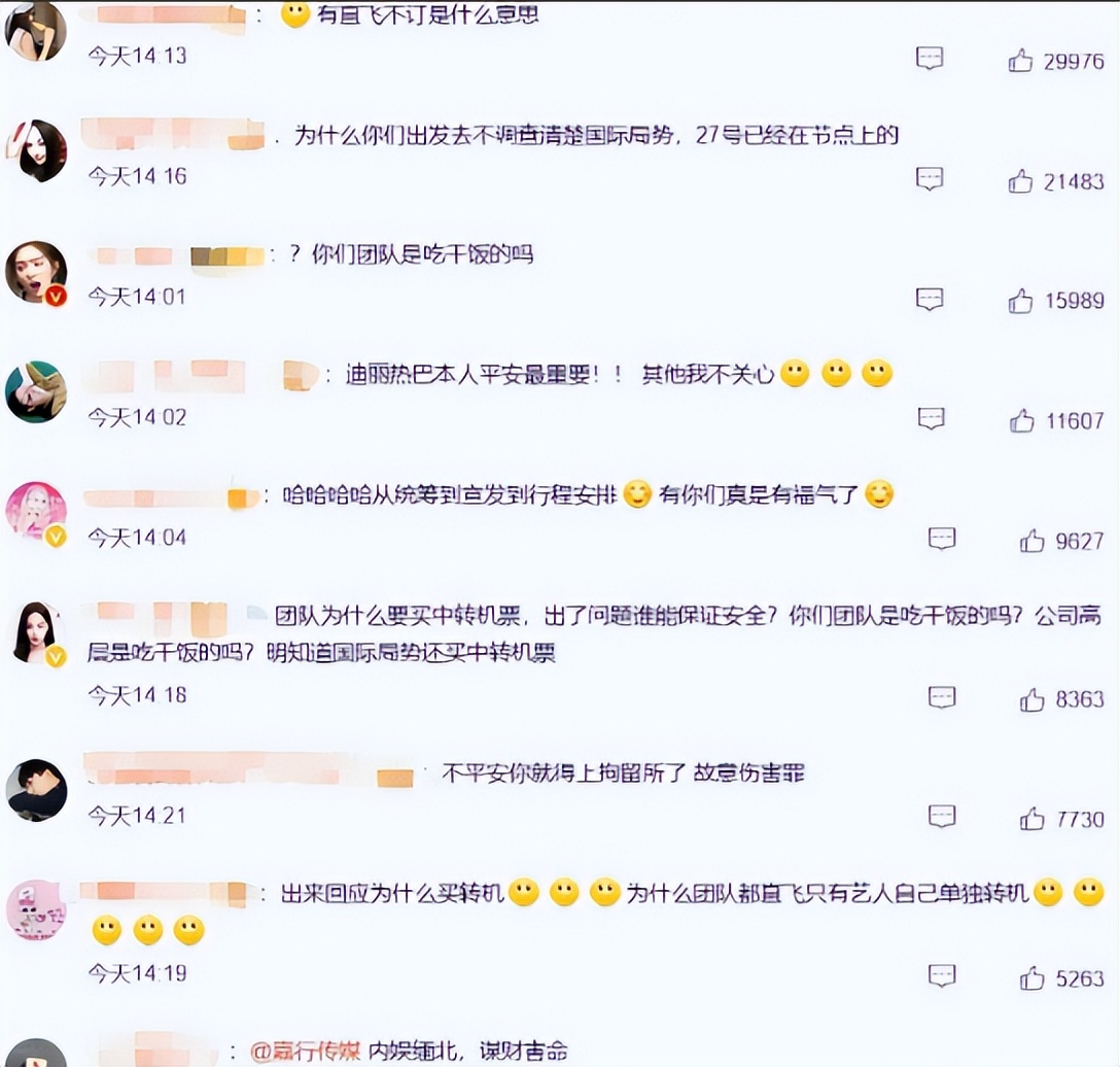 当她被滞留的消息曝光后,粉丝们都很愤怒要求工作室给个说法,同时有一些网友造谣她是去那边做“大生意”。