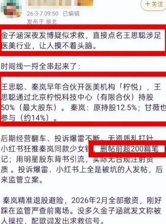金女士在描述对方的时候,用的是“她”,看来对方是女性,很多网友联想到了秦岚。