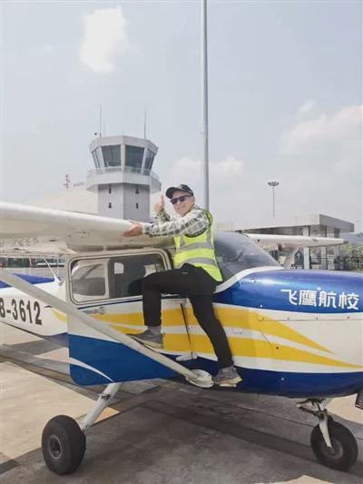 2024年1月至4月,郑镇炎通过70个小时的学习,在成都实现了飞行梦,也成为该航校年龄最大的学员。