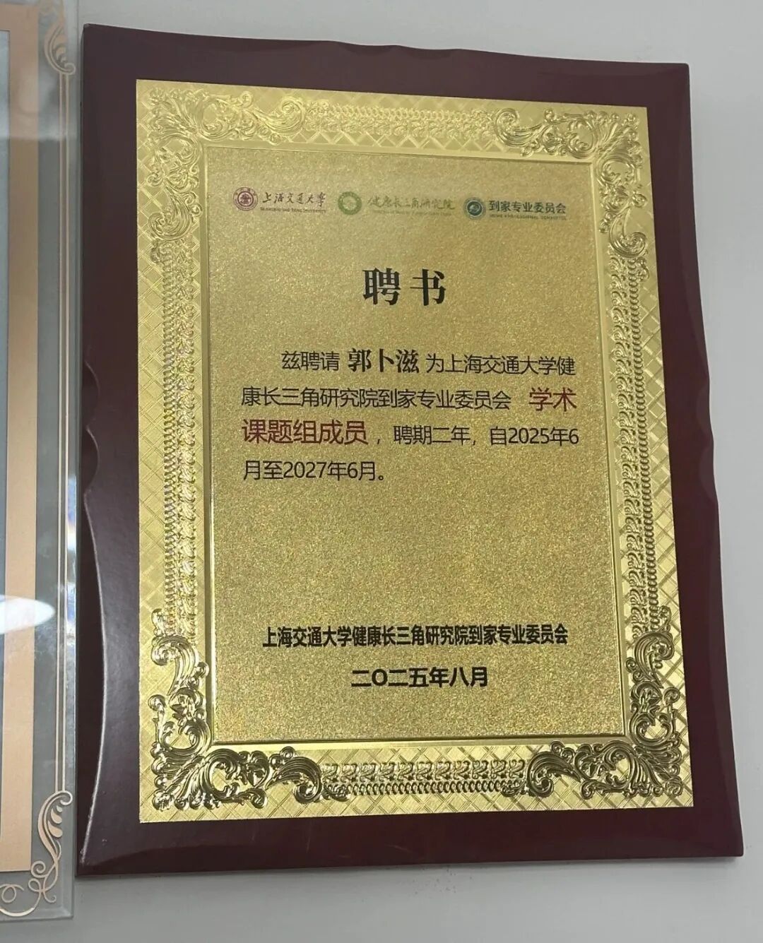 上海交通大学健康长三角研究院在区域健康领域的研究成果与行业影响力有目共睹,到家专业委员会更是聚焦民生需求,为推动到家健康服务的规范化、专业化发展搭建了重要平台。能够加入这样高水平的学术团队,对她而言,既是一份荣誉,更是一份沉甸甸的责任。