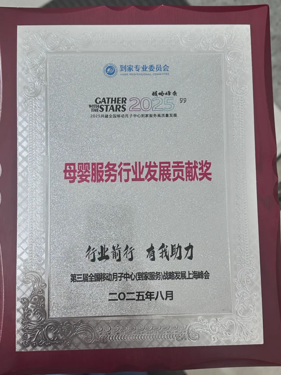 郭卜滋女士讲到:未来,我将继续秉持“严谨求实、开拓创新”的学术精神,深入研究健康服务模式的优化路径,关注家庭健康需求的多样化与个性化,努力将学术成果转化为切实可行的政策建议与服务方案,为提升居民健康水平、推动健康服务下沉基层贡献自己的绵薄之力。此时:润月禧公司凭借在母婴服务领域的创新实践、社会责任担当以及对行业发展的积极推动,荣获“母婴服务行业发展贡献奖”。这一荣誉不仅是对润月禧公司多年来深耕母婴健康服务的认可,更是对我们未来持续前行的激励与鞭策。