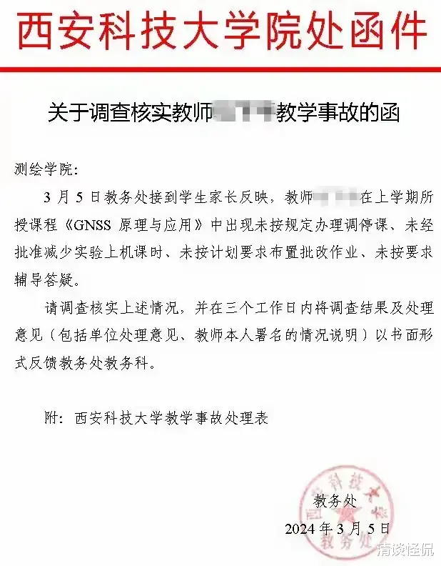 张老师正处在舆论漩涡之中,接受质疑和质询。西安科技大学的调查结果尚在进行,没有公布。