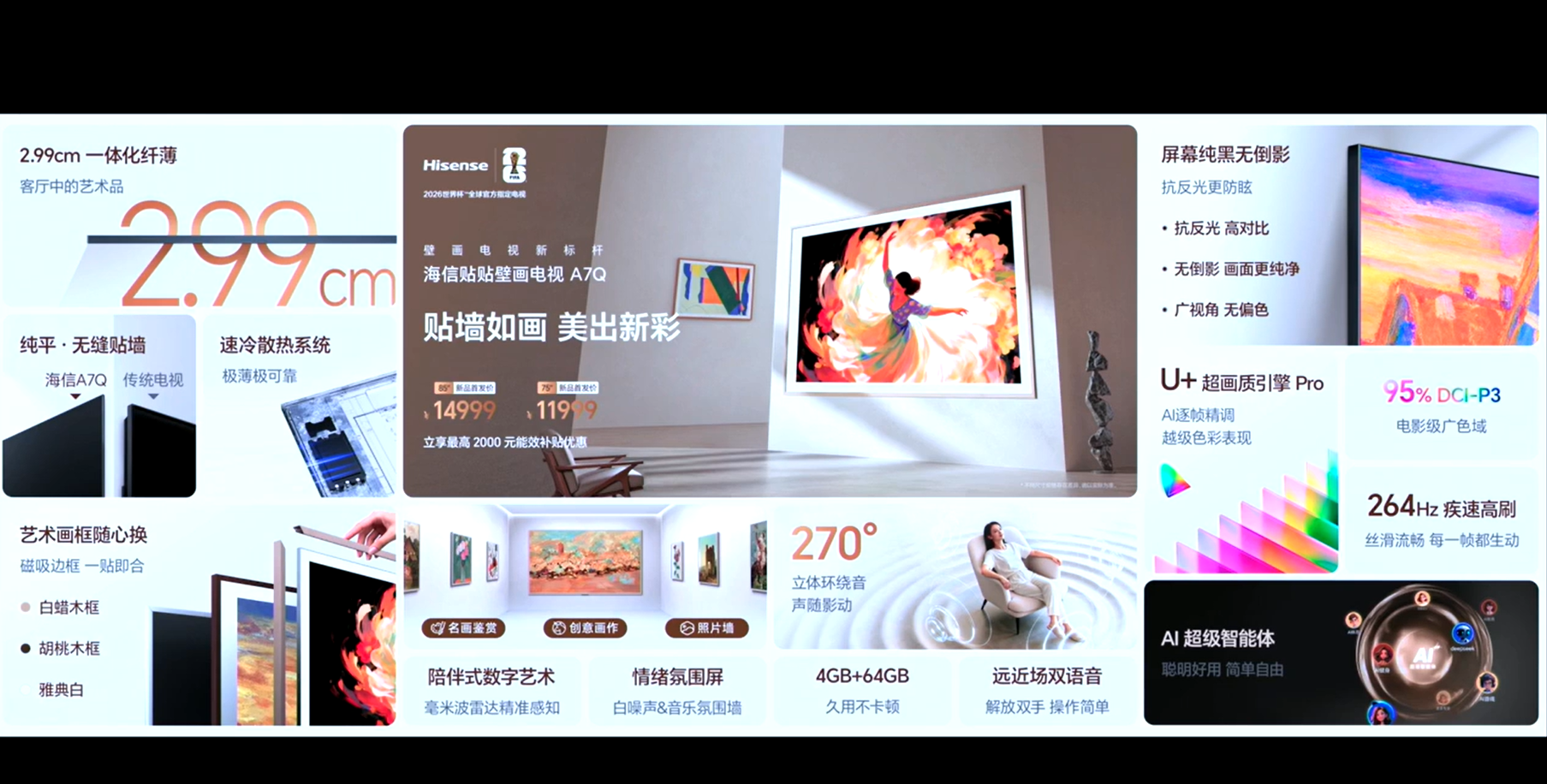 海信此次推出了**U7S Pro和G7 Ultra**等多款产品,形成覆盖电视和显示器的双旗舰阵容。