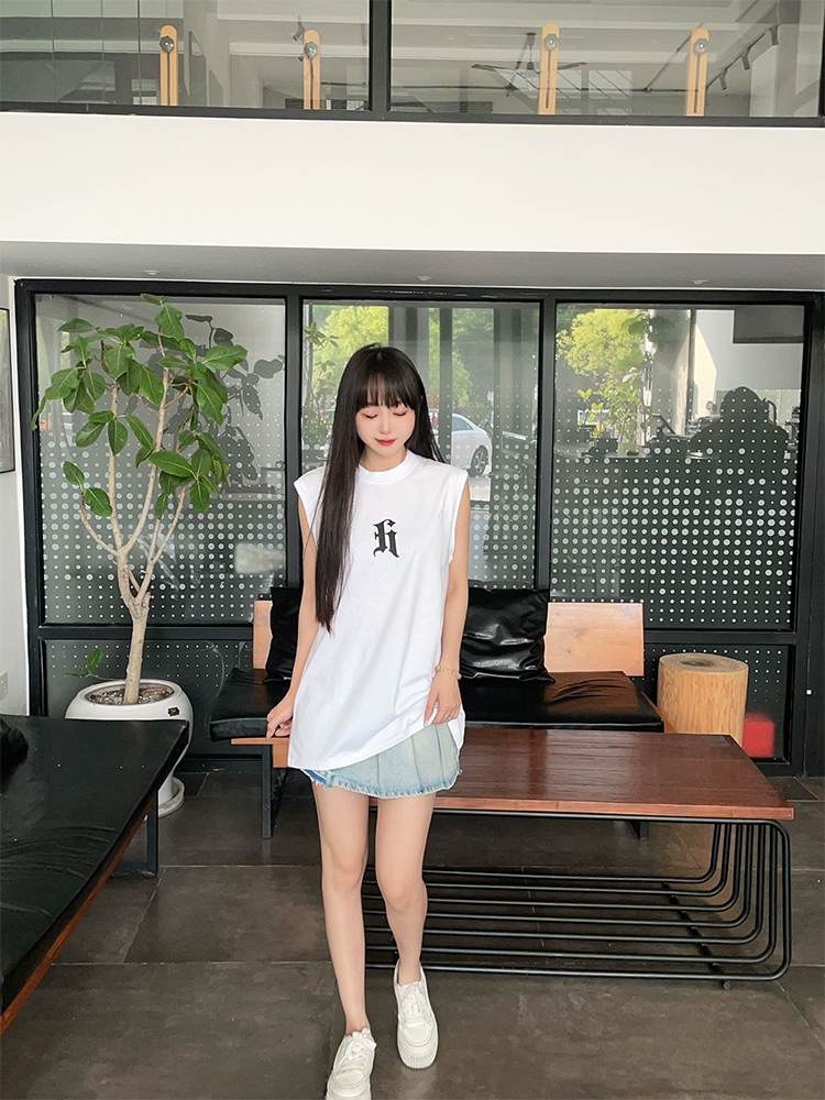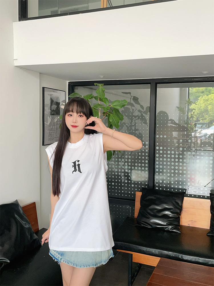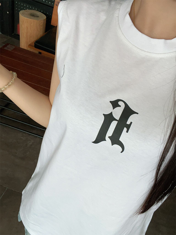 谁懂啊!纯棉无袖背心,简约字母设计,松弛