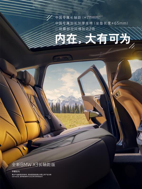 全新X3加长升级,大空间+长轴距,后排轻松翘二郎腿!💃 流线车身+曜夜套件,开在路上就是焦点,随手一拍都是春日时尚大片!📸