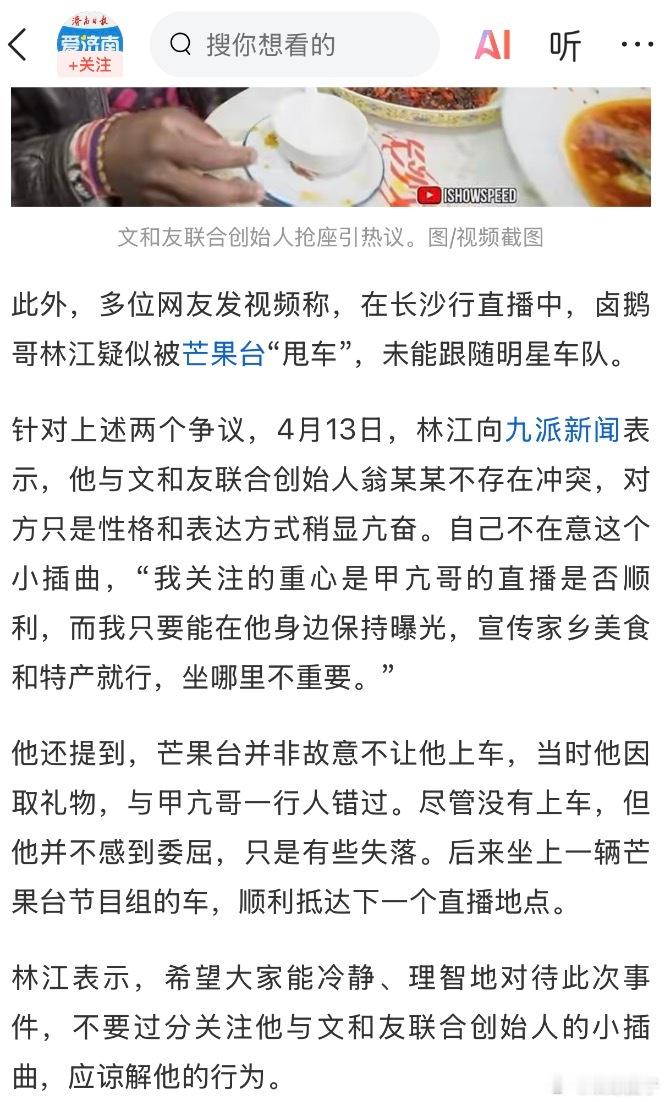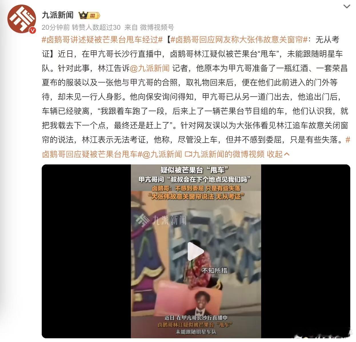 卤鹅哥辟谣被芒果台甩车 别再被误导啦!卤鹅哥亲自澄清,在长沙直播时只是因取送给甲