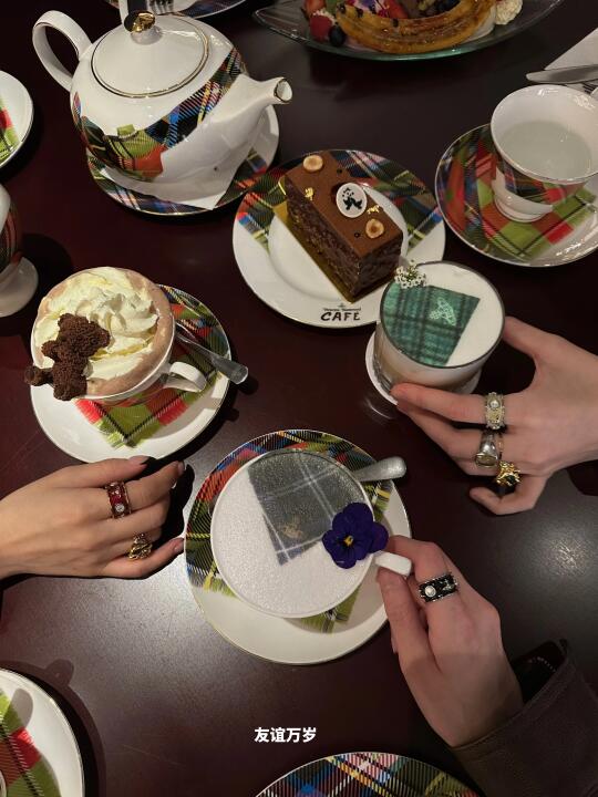 去喝了西太后的美丽下午茶🧸 朋友一秒看中很适配的三人友谊戒指🪐