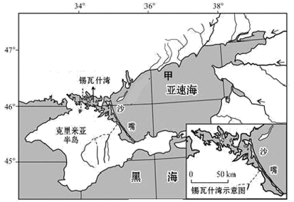 海滨西侧矗立着长达113公里的阿拉巴特沙嘴,如同一道天然堤坝将其与沼泽般的锡瓦什湾分隔。东北部的塔甘罗格湾则像嵌入陆地的巨大水盆,成为海域内最大的海湾。海岸的西、北、东三面是沙洲与潟湖交错的低地,南岸则多为石灰岩构成的高地,参差起伏。