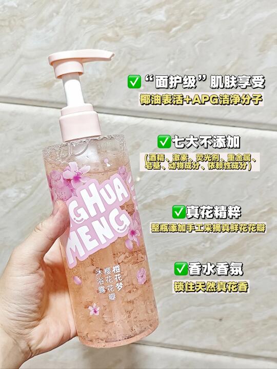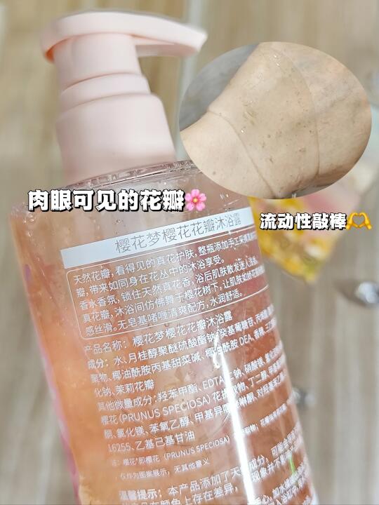 昨天去上班 同事问我是不是喷了香水 说我身上怎么这么香… 漏漏漏! - 其实是我用了这个 樱花梦的花瓣沐浴露啦[星R] 闻起来巨香 还有大片的花瓣! 都是手工采摘的新鲜花瓣喔 而且它还是七大🙅🏻添加的 用着也放心~ 还添加了椰油表活+APG洁净因子 每次沐浴都能给我们带来“面护级”的肌肤享受~ - 稍微挤一点就能揉搓到敲绵密的泡沫啦 温和不刺激 洗后也不紧绷 润润的吼舒服! - 我用的樱花味留香也持⑨ 第②天醒来被窝都是樱花味 香香的吼清新 真嘟是越用越喜欢[害羞R]