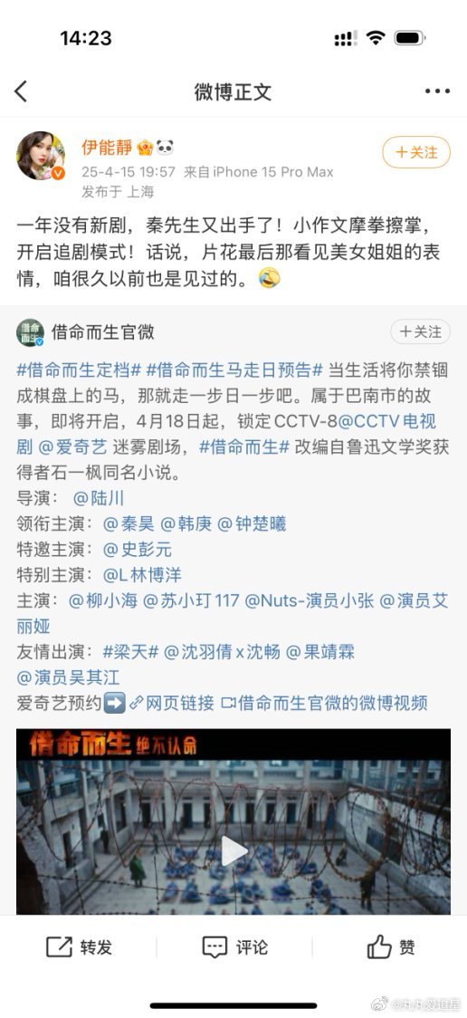 伊能静说秦昊是悬疑剧的王伊能静说秦昊是悬疑剧的王,这波狗粮太猛,真夫妻的爱意都快把我淹没了!借命而生
