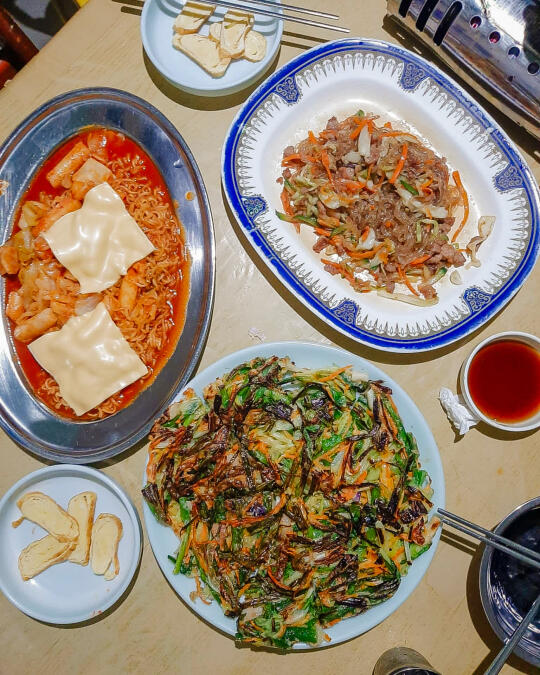 ✨7/10✨ - 外表看起来简陋,但食物真的好吃 😋 这家在 Ampang 的韩国餐听很多人说过,是有一对韩国老夫妇开的。外面经过的时候甚至看不到店面的招牌,绕了一两圈才看到 😂 里面的灯光微弱,所以整个环境有点昏暗,建议和几个朋友一起来吃比较好! 点了几道主食,年糕和冬粉都很好吃,调味刚刚好。部队锅还蛮辣的,但我们喜欢吃辣,所以吃得很满足 👌 唯一的缺点就是环境不怎么好,会有点热 + 里面的装潢比较久,墙壁都是一些旧报子 / 手写的笔记。 下次再区试试别的食物!