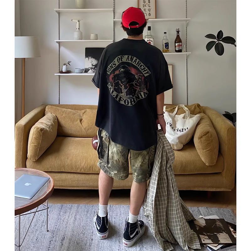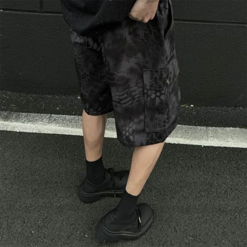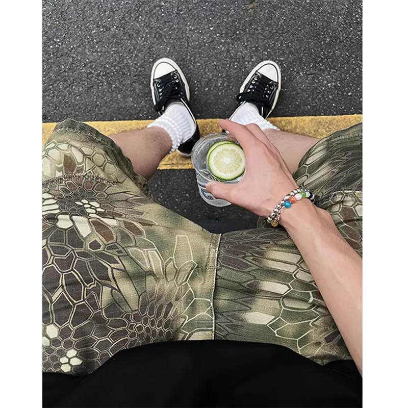 美式蟒纹迷彩短裤男夏季潮牌多口袋伐木工装