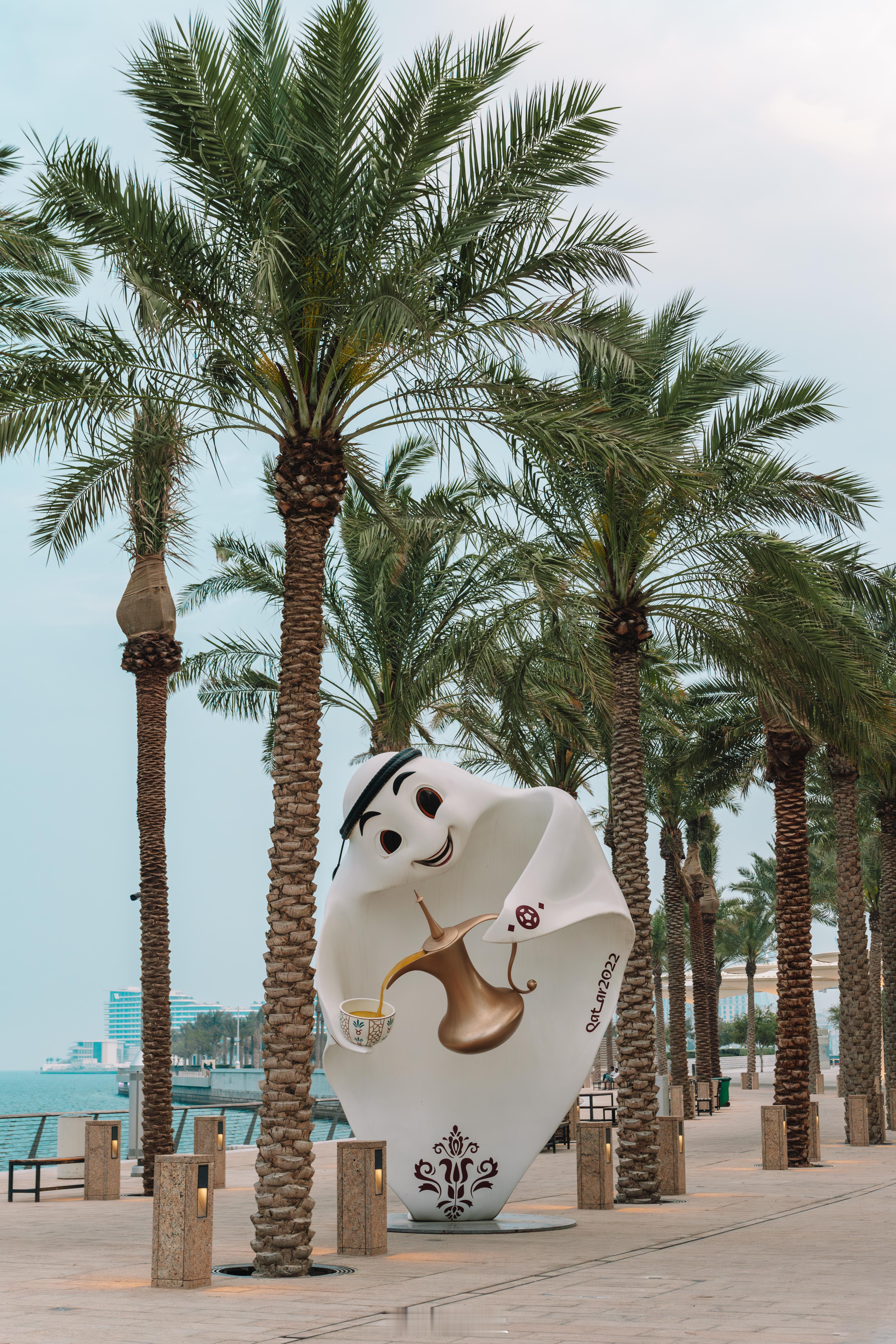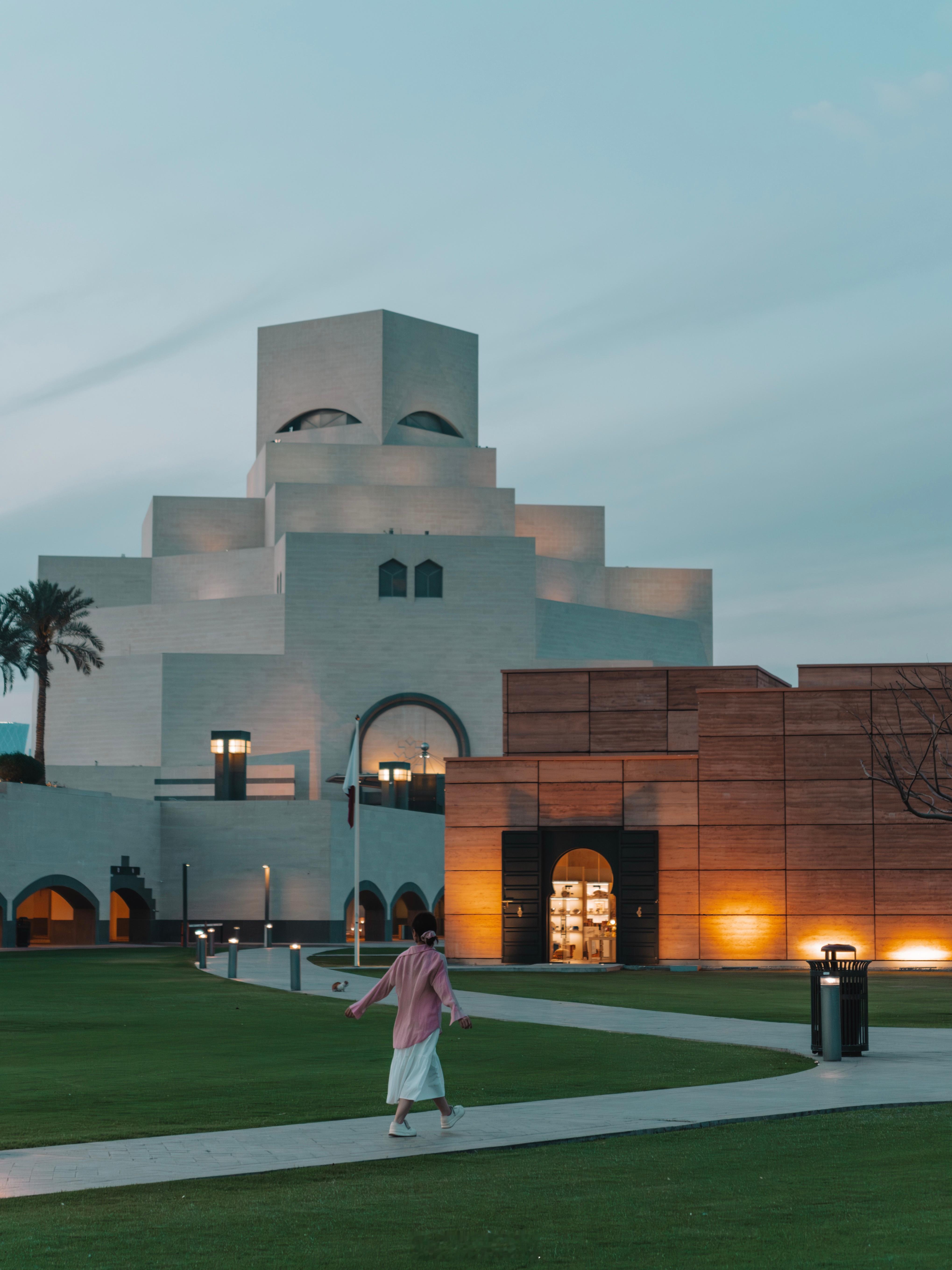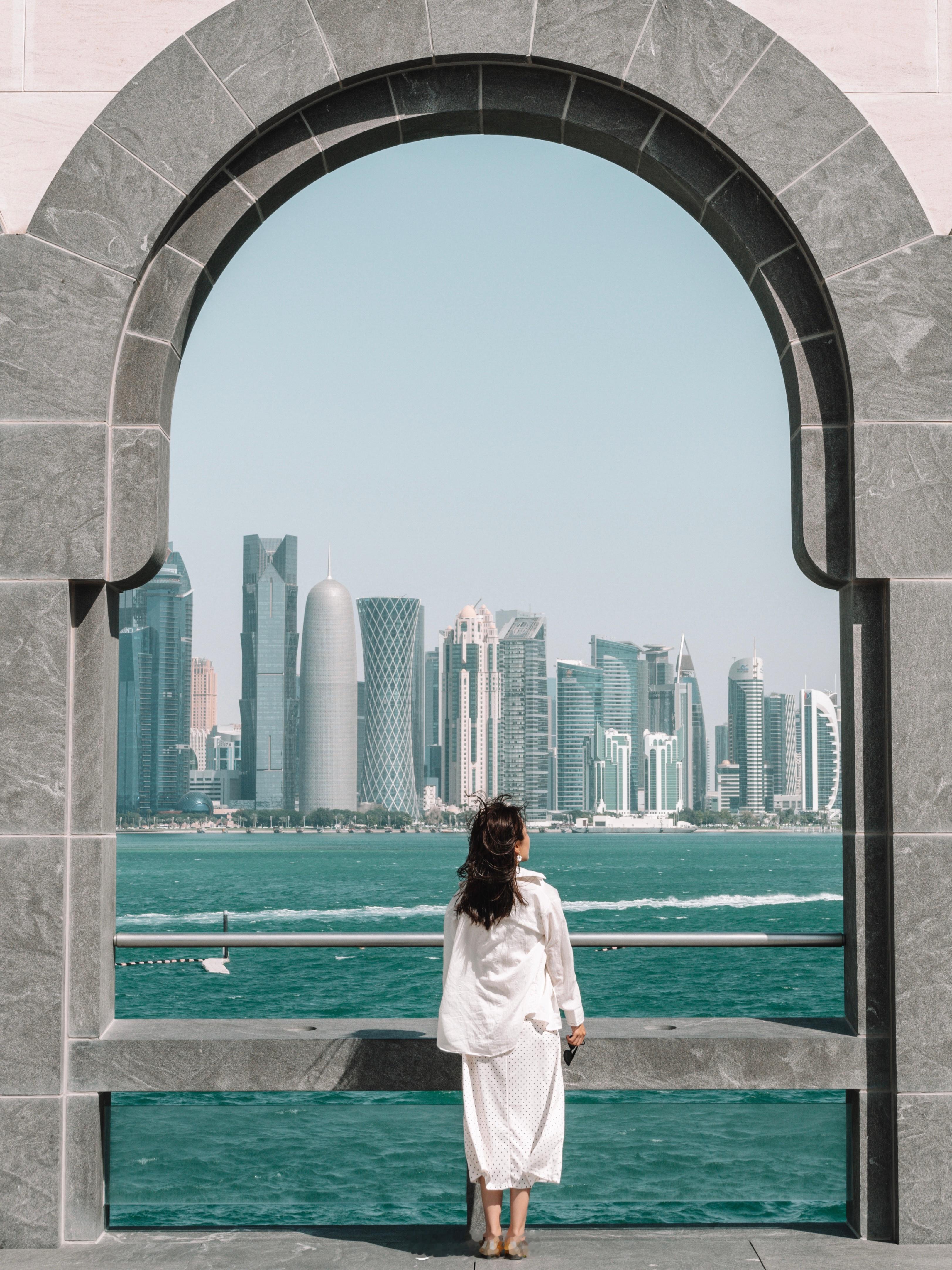 这个是个比较经典的多哈打卡机位,需要进入博物馆,但不用检票,进去就往右手边走,就会来到这个大平台,要注意博物馆的开门时间哦,非开门时间去不到这个位置。