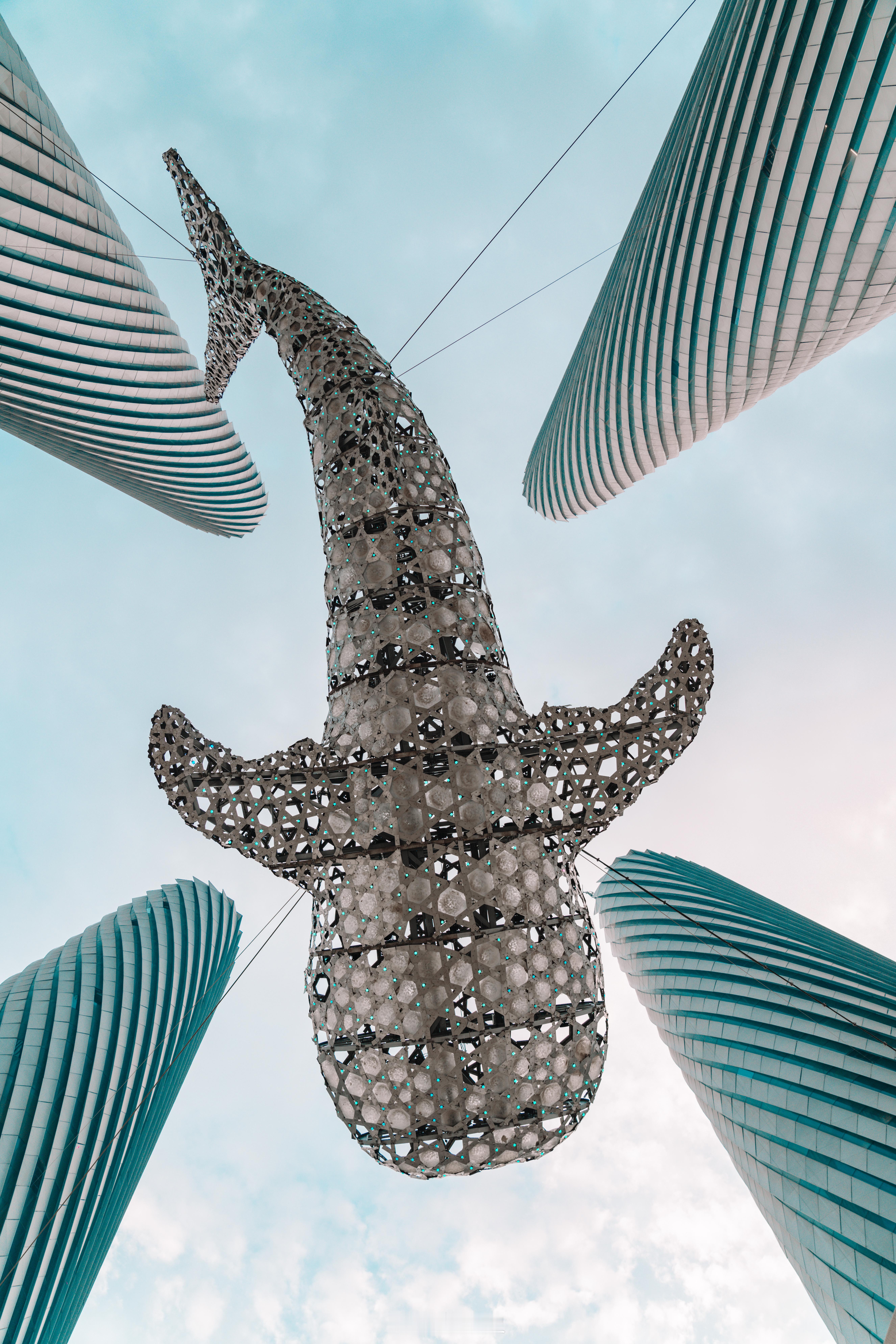 卢赛尔新城很有未来科技感,特别是四塔这里,这个机位是走到大鲸鱼正下面仰拍的。