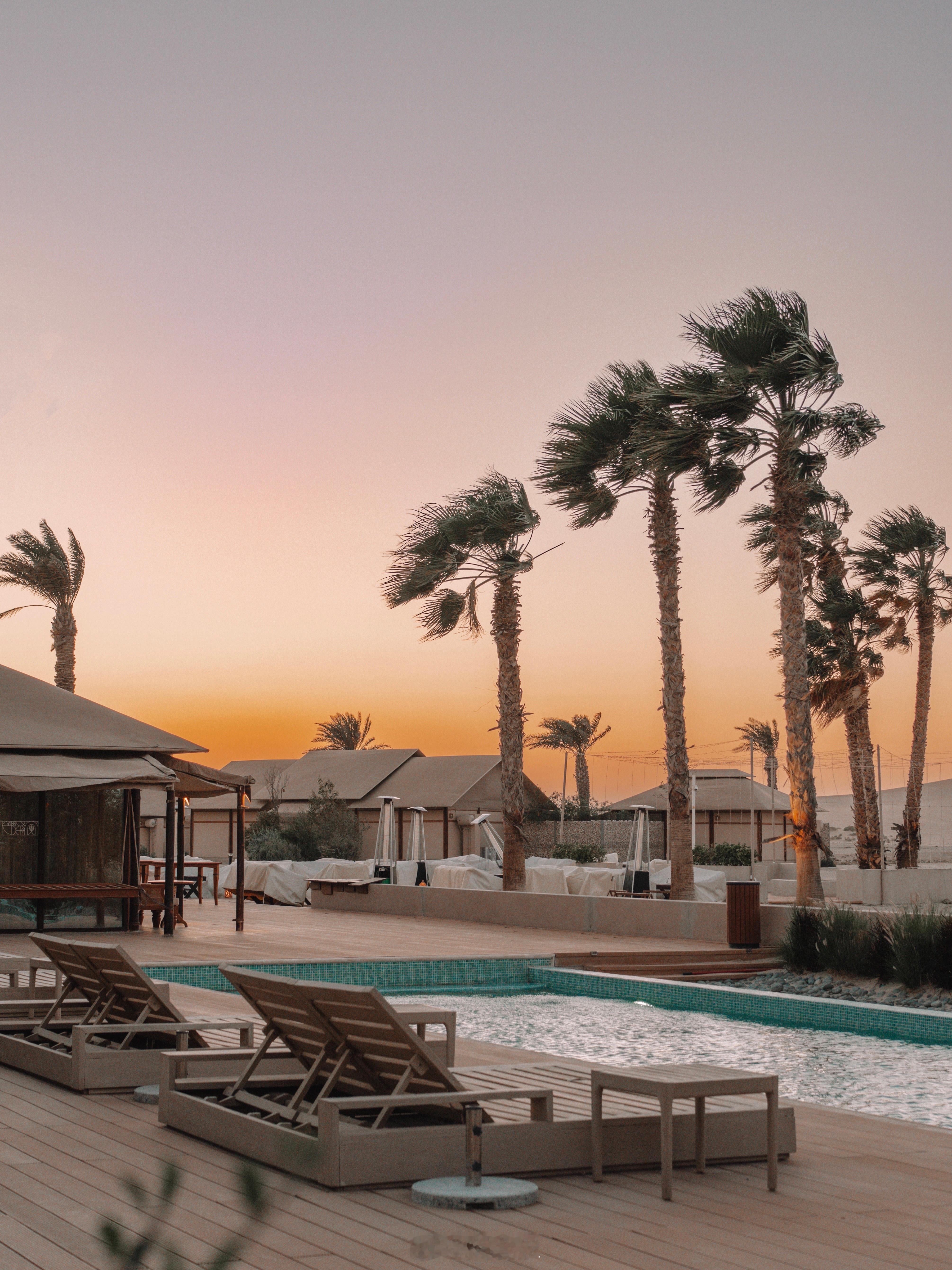 如果时间允许,很推荐在沙漠里找一家酒店住一晚,沙漠的夕阳配上棕榈树太美了~