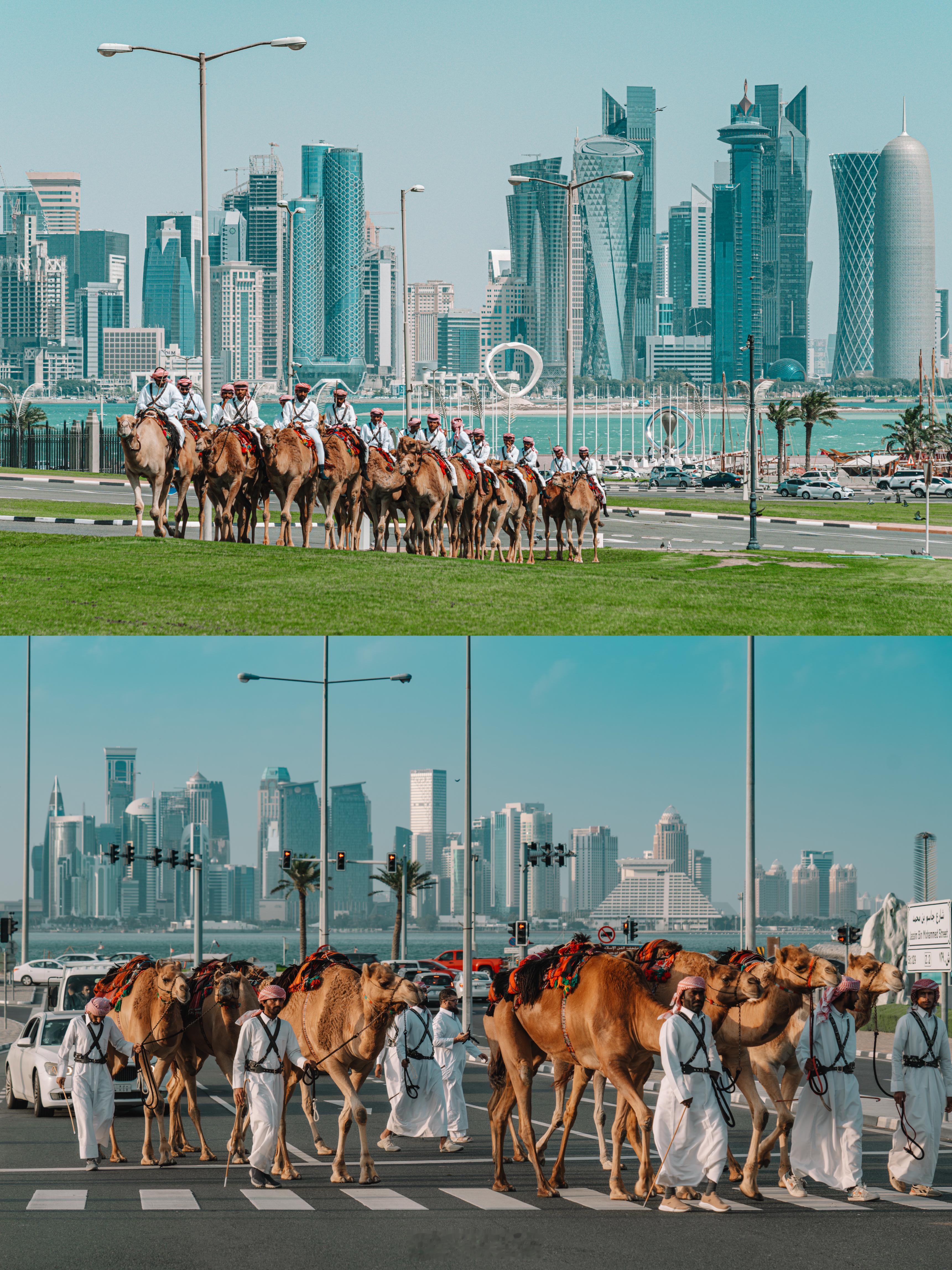 2️⃣ 卡塔尔皇宫草坪骆驼巡逻队