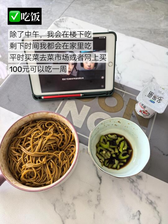 工作日,我会在我们公司楼下吃,一份面条10元,平时 回家自己做。