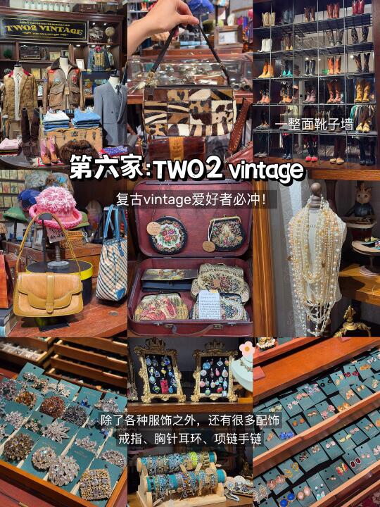 一进门就被整面靴子墙吸引!整家蔓延着复古的味道,包包,首饰珠宝,复古西装、工装靴,店内布置像中世纪欧洲集市,拍照自带胶片感~