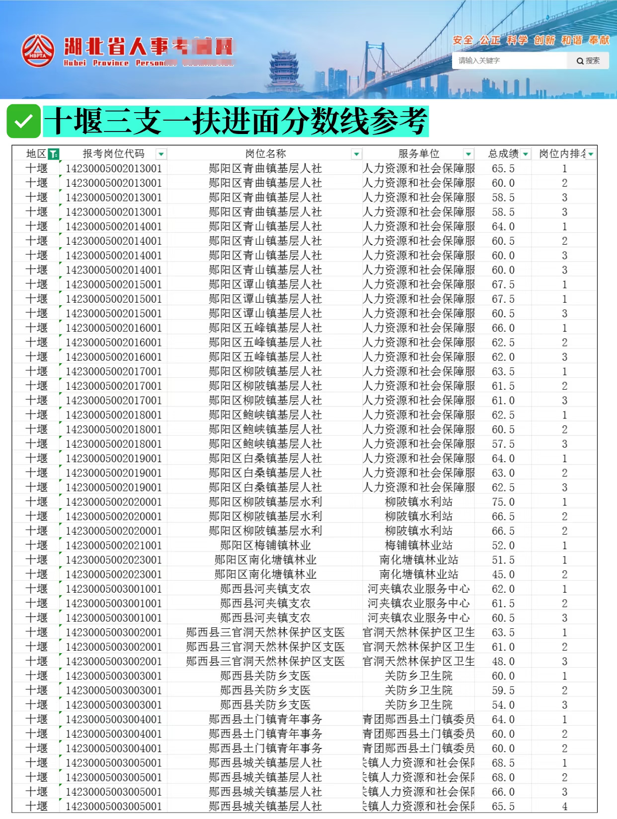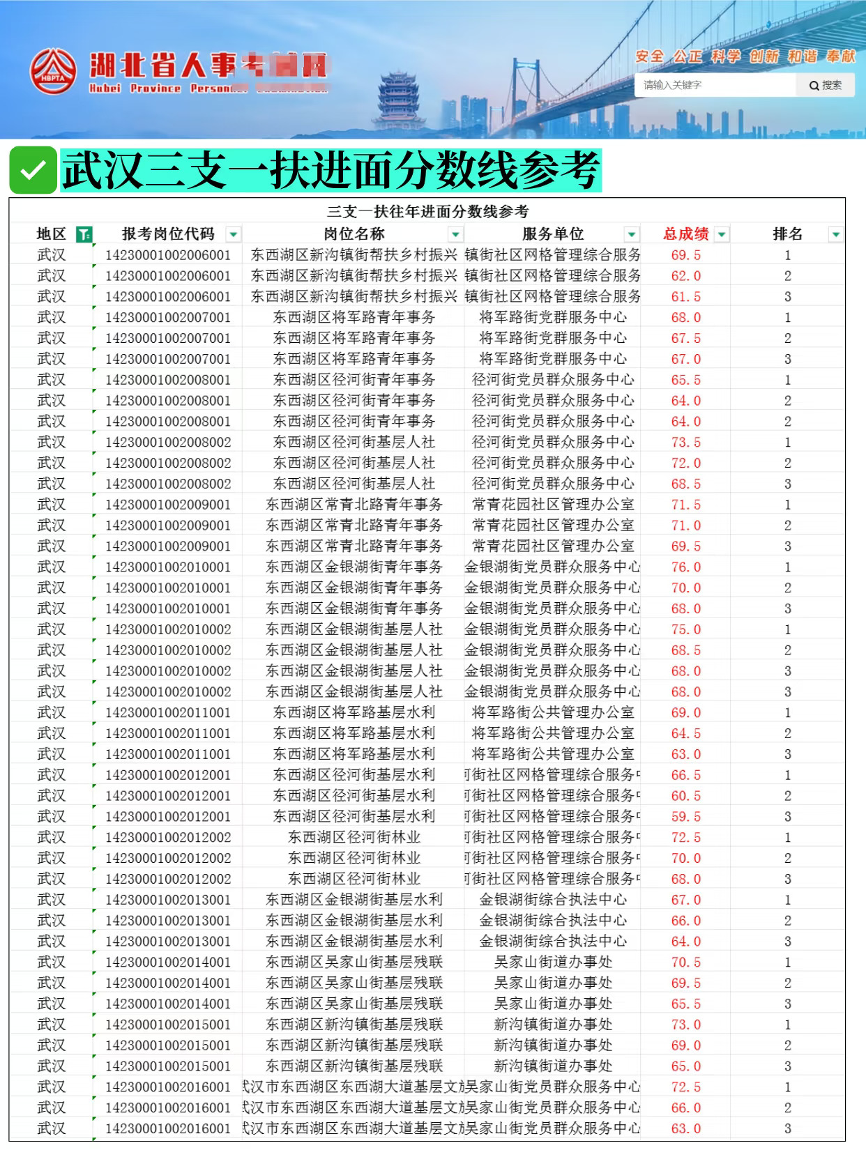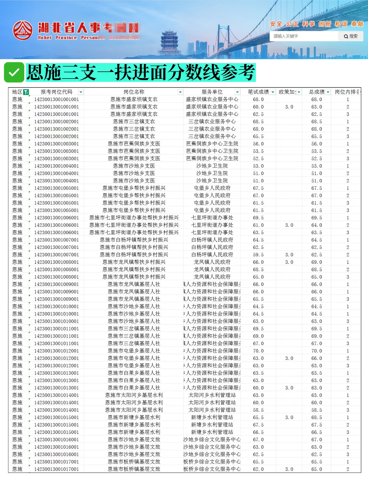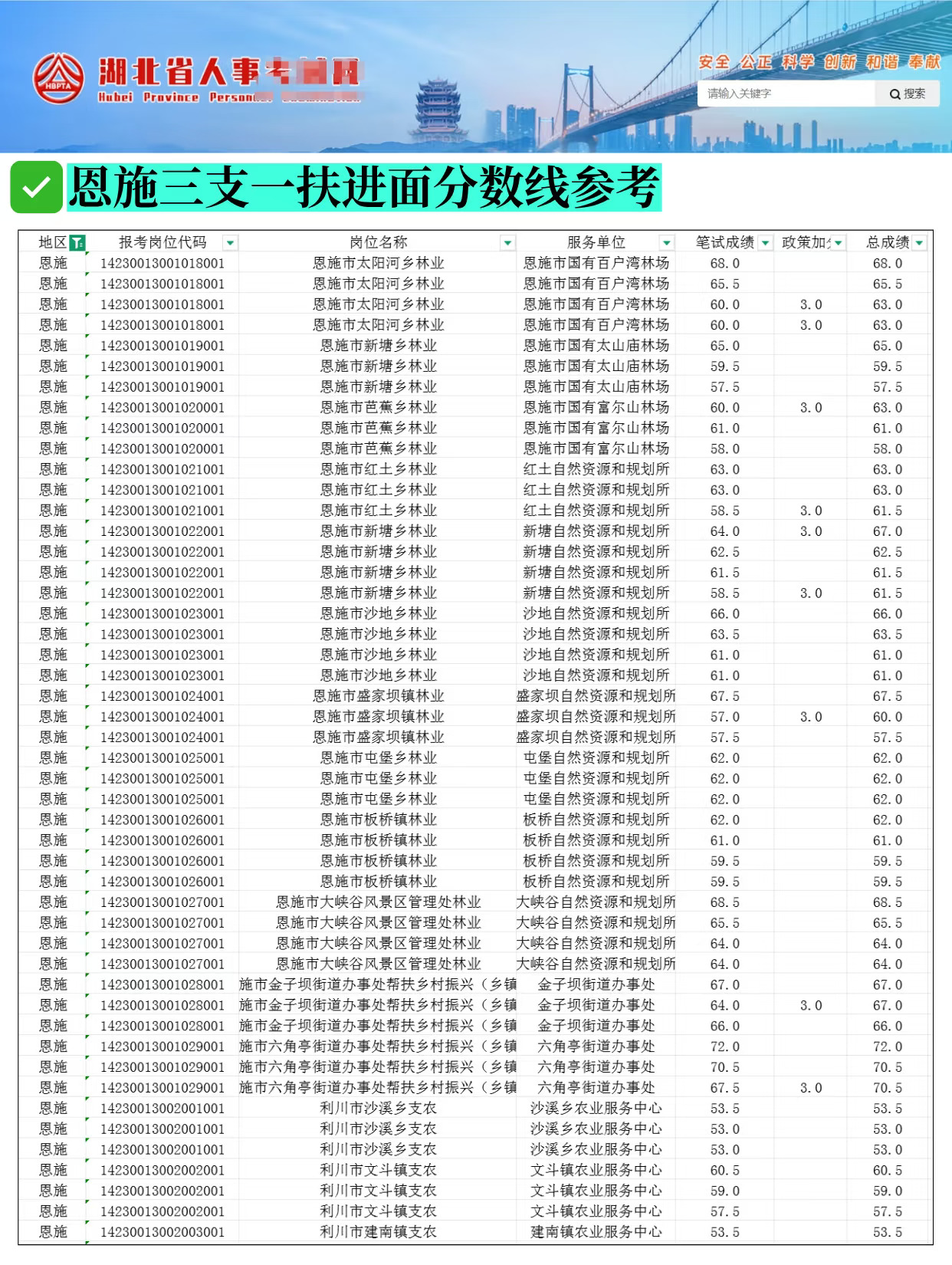 2025湖北 三支一扶 进面分数线参考 &历年珍题 2025年湖北三支一扶历年进面分数线参考