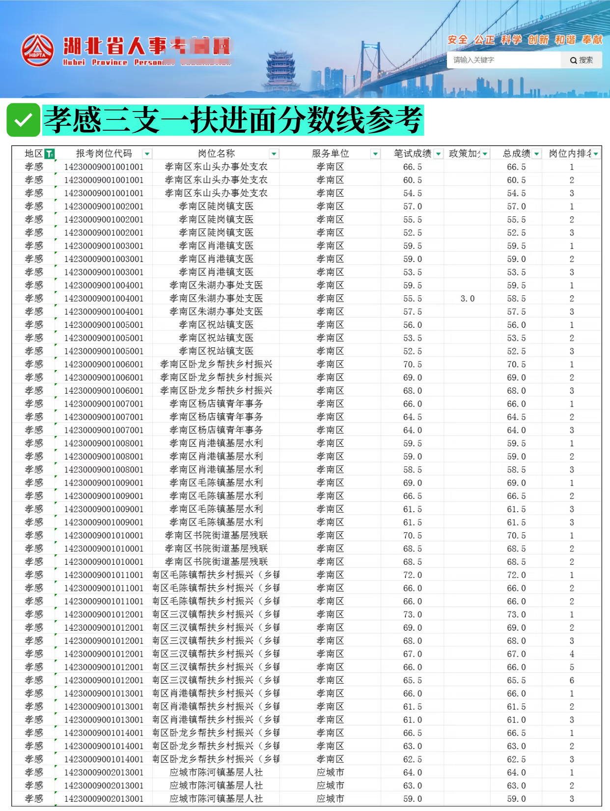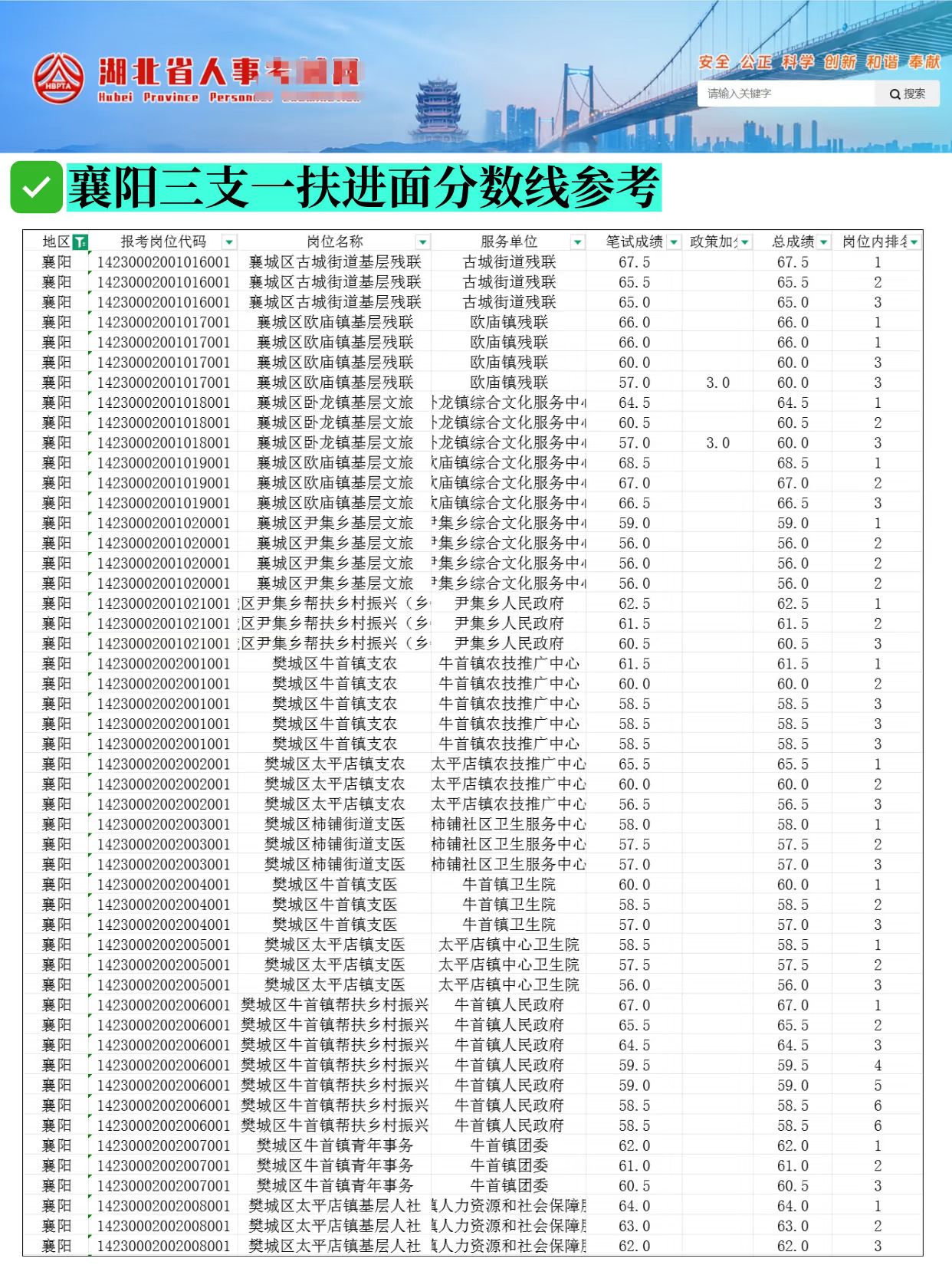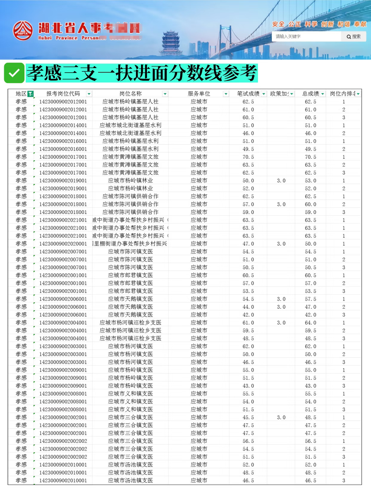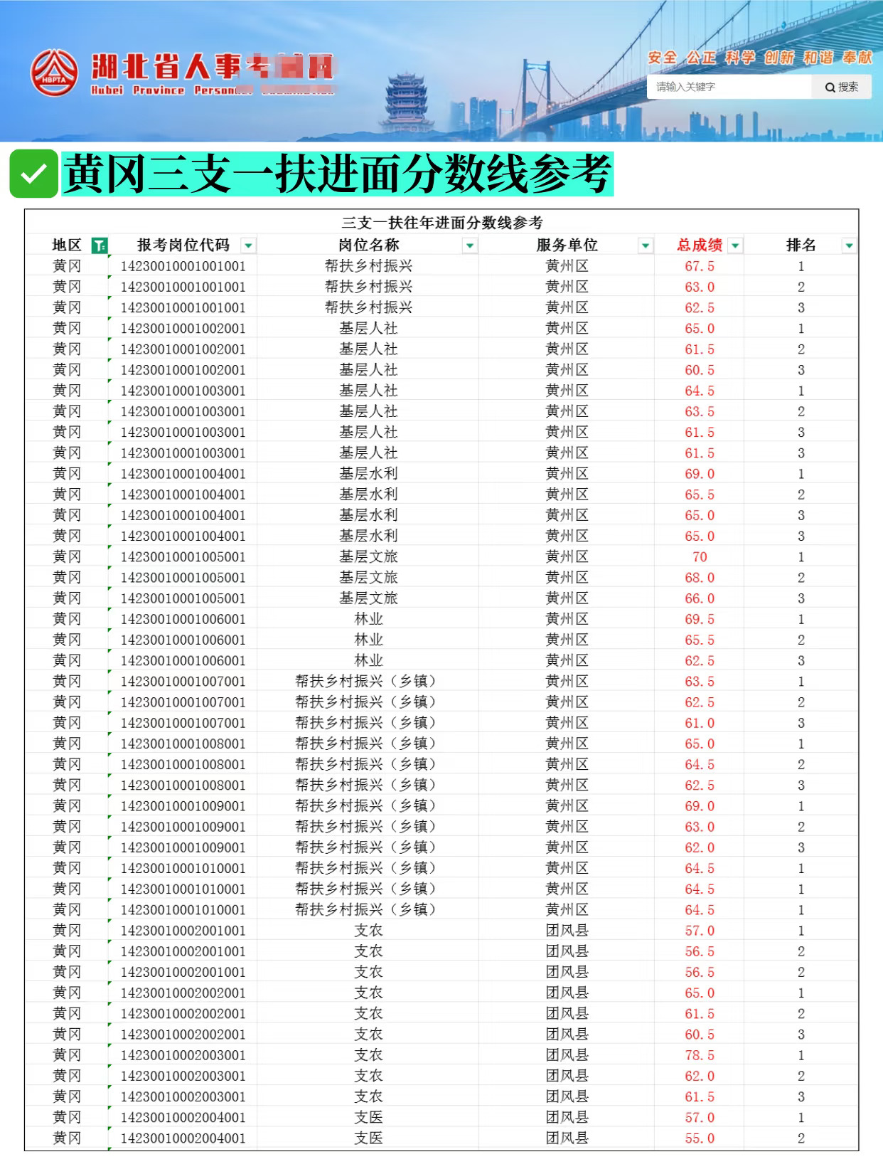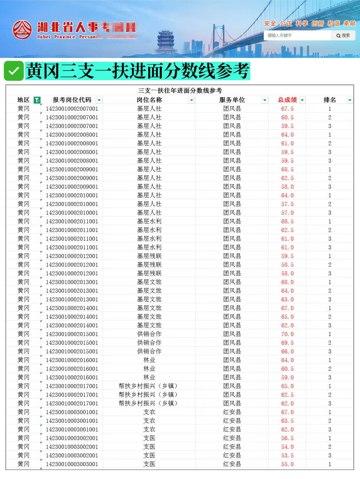 2025湖北 三支一扶 进面分数线参考 &历年珍题 2025年湖北三支一扶历年进面分数线参考