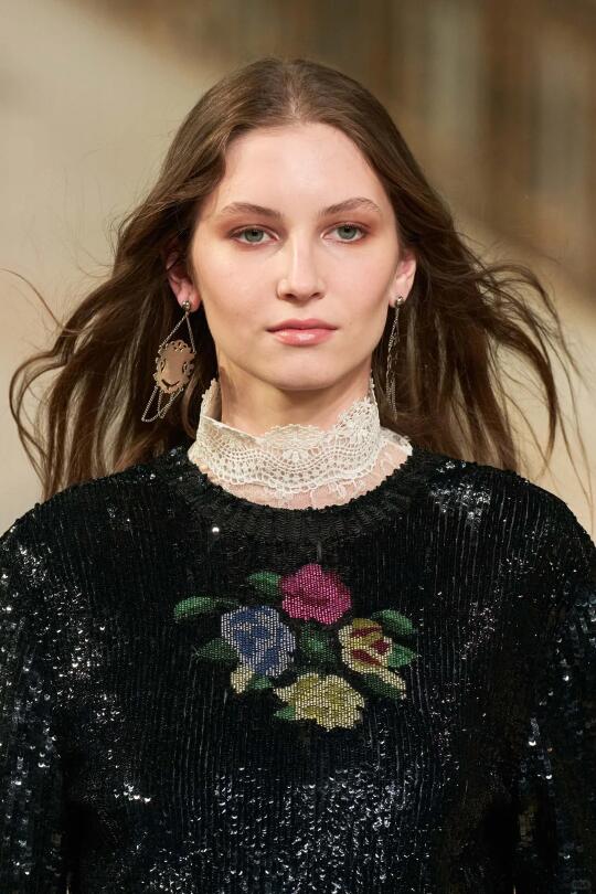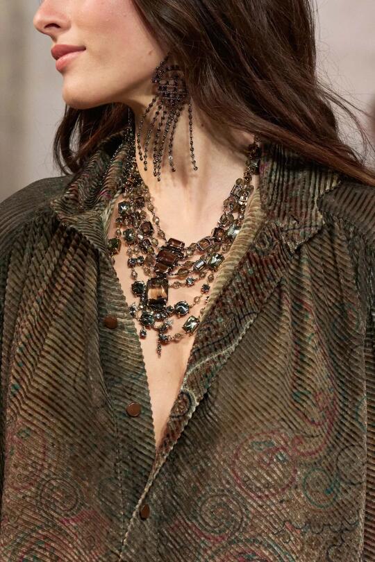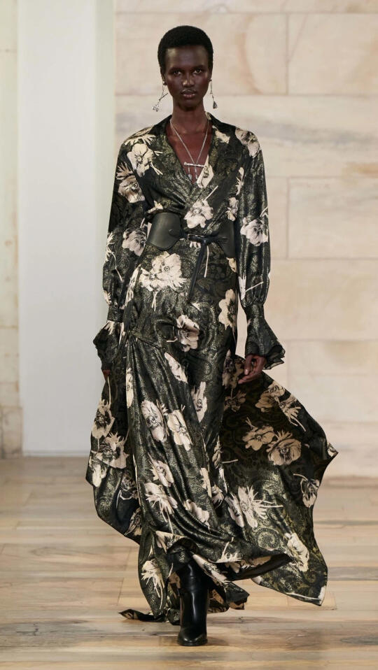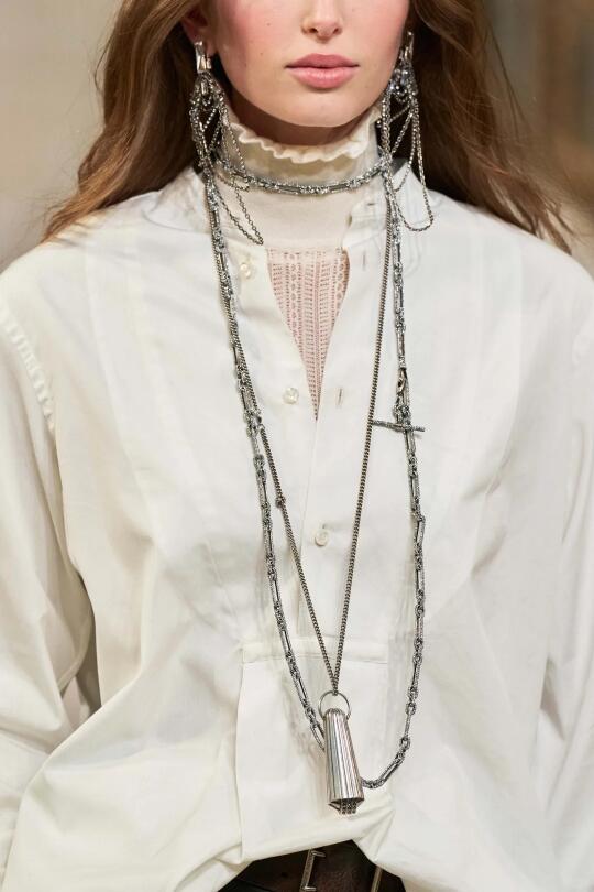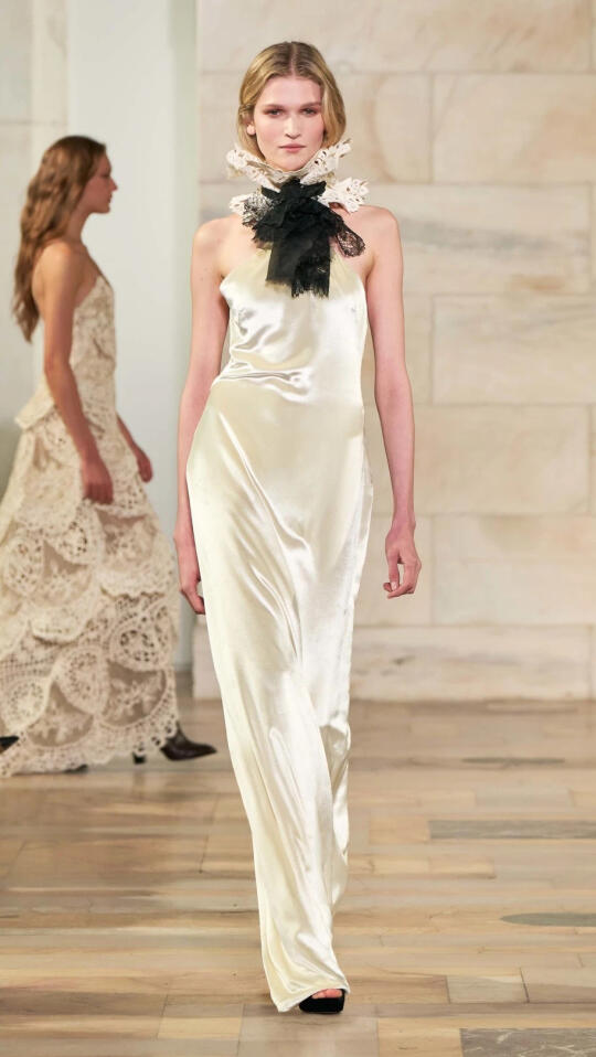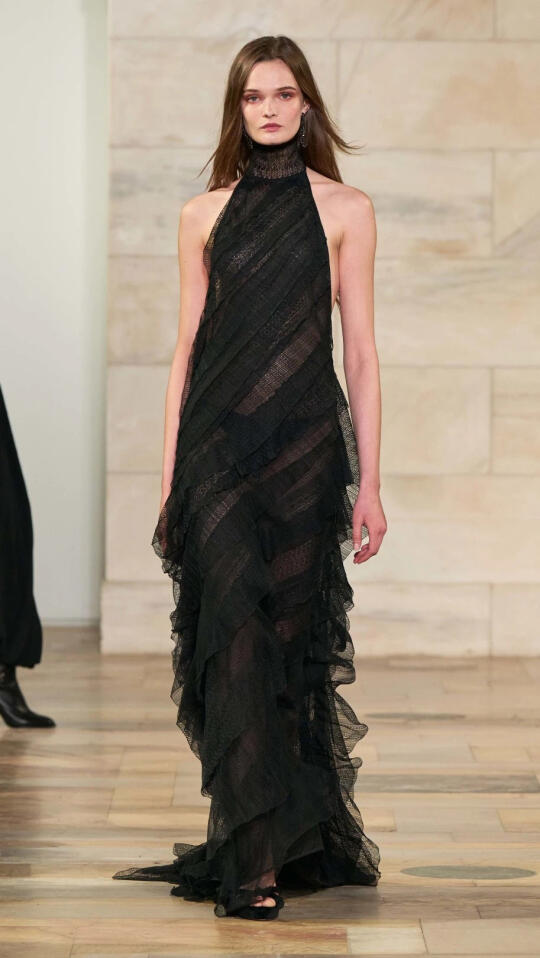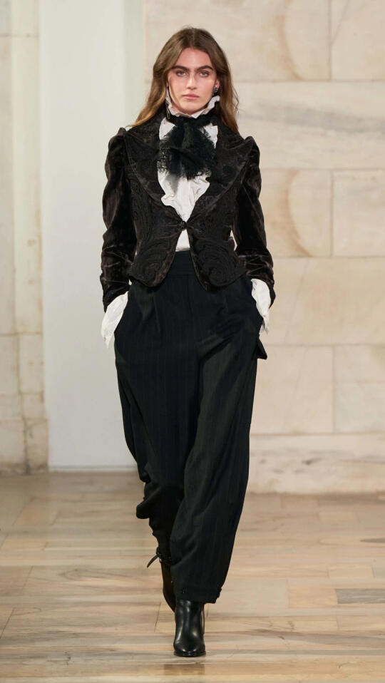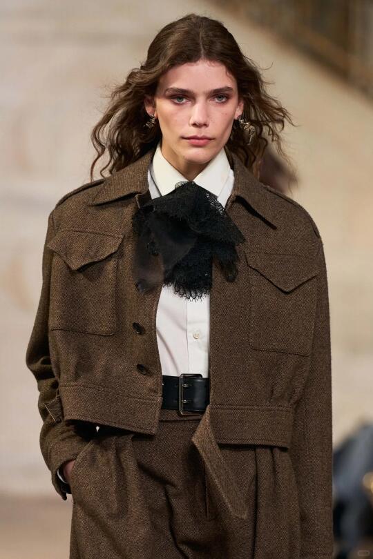 近日,Ralph Lauren 2025秋冬系列以“现代浪漫主义”为主题,系列中褶皱花边被大量应用在衬衫领口、领结设计中,另外还有品牌标志性的西装、外套、连衣裙等,兼具优雅与浪漫风格,尤其是领边的设计,诠释十足的复古主义特色。