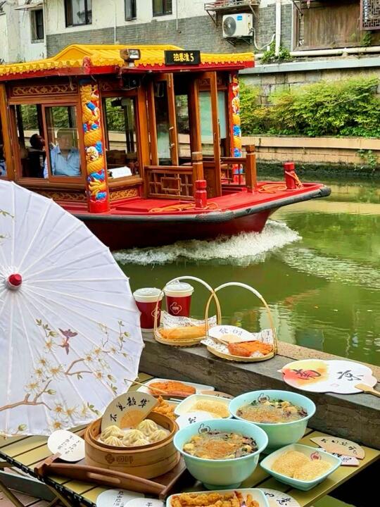 感谢网友推荐!! 拖着行李箱都要来吃的店😍 在秦淮河畔吃到了人生中的鸭血粉丝汤 招牌鸭血粉丝,超有料 鸭血、鸭肠、鸭肝、豆腐泡…搭配老鸭汤底 一口下去鲜掉脑袋😋 粉丝也煮得恰到好处,爽滑又劲超满足! 鸭油酥烧饼,酥酥脆脆的, 撒了一些芝麻,口感可太香了! 金陵小笼包,真的绝! 一口爆汁,肉馅紧实饱满,味道鲜得嘞 还有鸡排、春卷、小酥肉也都好好吃🤤