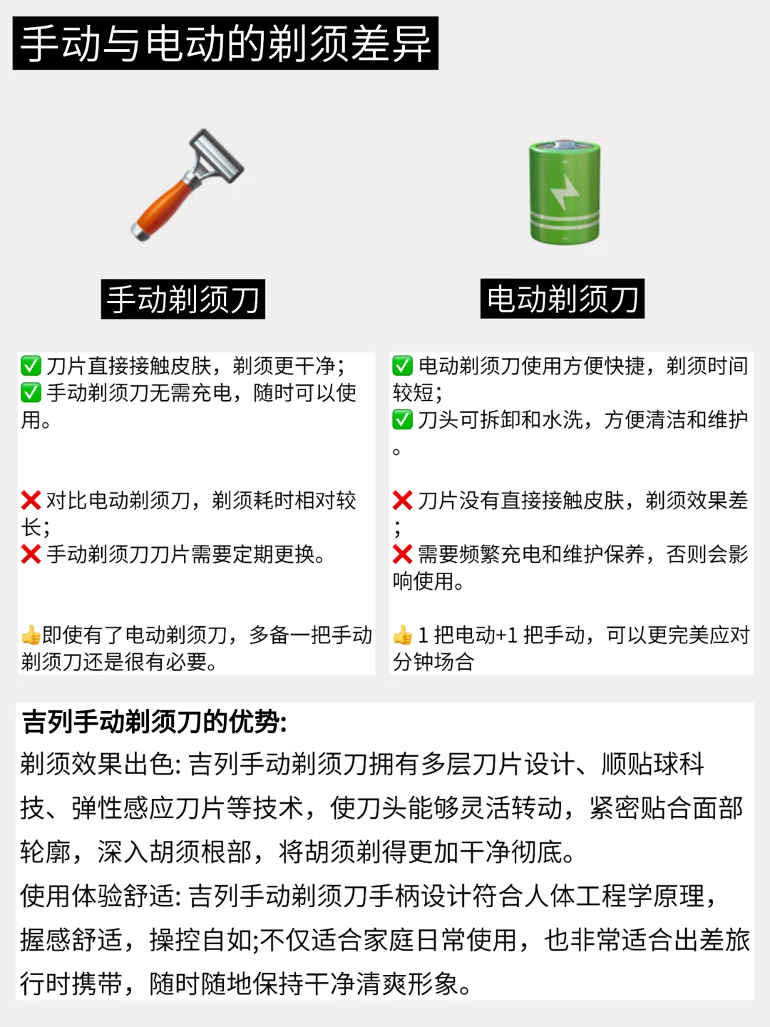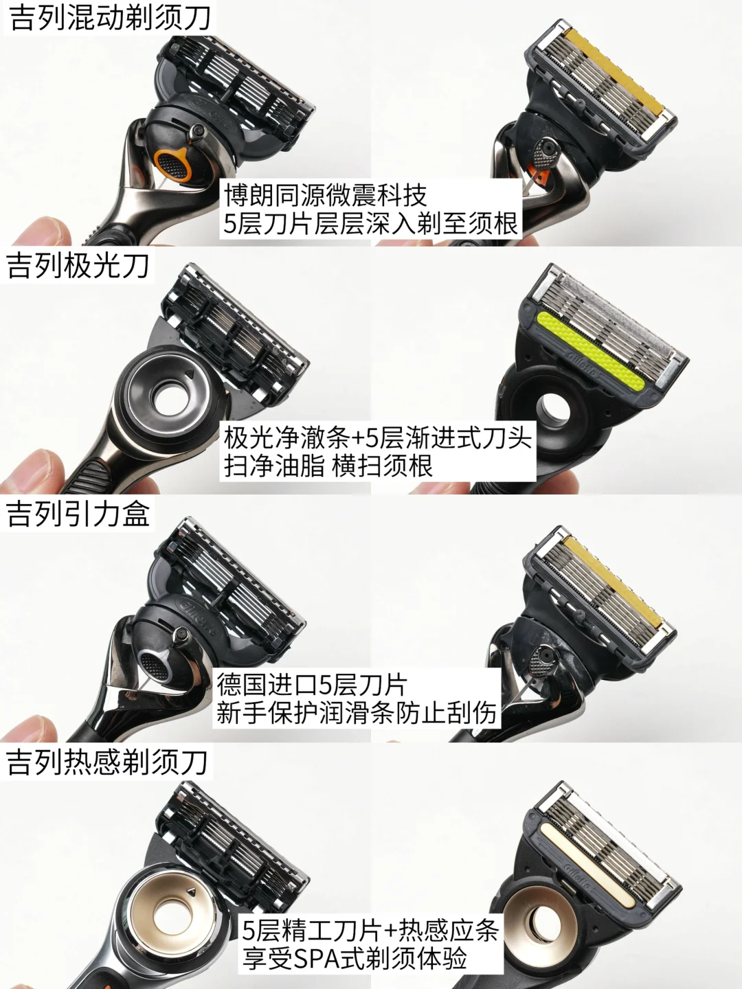 💥作为一名自由打工人,深知脸上没刮净,报价砍一半的真理,早上刚睁眼就要视频提案,偶尔下午见见客户,晚上还得剪片,怎能将熬夜改稿的疲惫相全写在脸上呢?最初我也沉迷电动的便捷——直到发现电动刀头总在皮肤表面打转,剃完摸着仍有胡茬,反复的摩擦甚至还会导致泛红。当我把电动剃须刀拆开清理时,那些卡在网罩里的胡渣终于让我顿悟:真正干净的剃须,必须让刀片贴着脸部轮廓走。于是,在电动剃须刀横扫市场的今天,我反而重新捡起了父辈的手动剃须仪式。每天清晨用剃须膏揉出云朵般的泡沫,看着刀锋在镜面划过时拉出银亮弧线,这3分钟的剃须仪式,成了都市丛林里难得的自我对话时刻。当刀片与胡茬摩擦出沙沙声响,那种掌控每一寸肌肤的触感,才是真男人该有的修容哲学。 - ▪️吉列引力盒(200-) 经典不出错,标准入门性价比款。百元的秒杀价让它成为大部分的第一把剃须刀。进口5层刀片+亲肤润滑条,新手安全友好型,刮的干净也刮的放心。 ▪️吉列混动剃须刀(200+) 混动新体验,手动电动二合一,配合博朗通源的微震科技,剃须更高效,还有一键自清洁的功能,使用起来超方便,适合日常通勤党。 ▪️吉列极光刀(300+) 油皮的天菜款,采用了 Flexdisc 顺贴盘的设计,还有 5 层刀片和极光净澈条,使用时可以带走脸上多余的油脂,保持脸部清爽,搭配旅行盒外出差旅也很方便,适合油皮党和出差党。 ▪️吉列热感剃须刀(800+) 自带“热敷”的剃须刀,告别上脸冰冷感,两档温度可调节,每次剃须都感觉是一次SPA享受,非常适合精致的都市型男,可以算是完美的剃须体验了! - 马上就要 618了,这个节点入手一款手动剃须刀还是蛮合适的,大家可以根据预算和需求看看吉列的这4款,最后希望大家都能找到适合自己的那一把吉列剃须刀!🪒