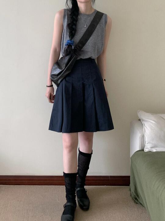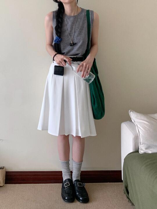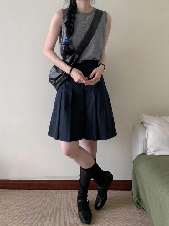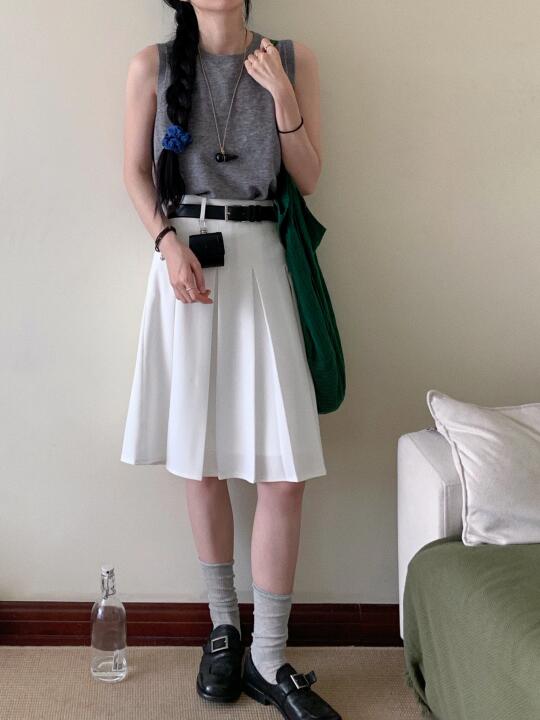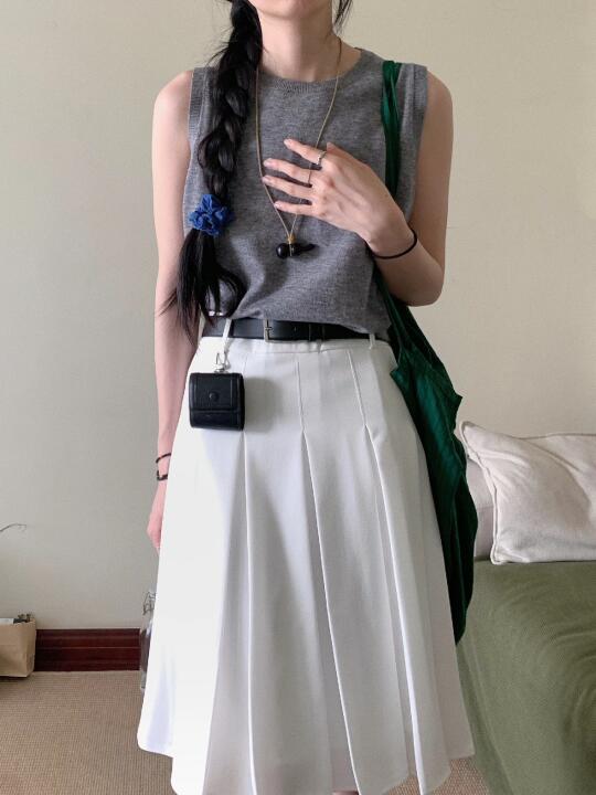 还是昨天的针织背心, 不喜欢裙儿的可以换裤子~ 三套搭配,任君挑选 灰色就是万能色啦 - 午安啊☀️加油加油 -