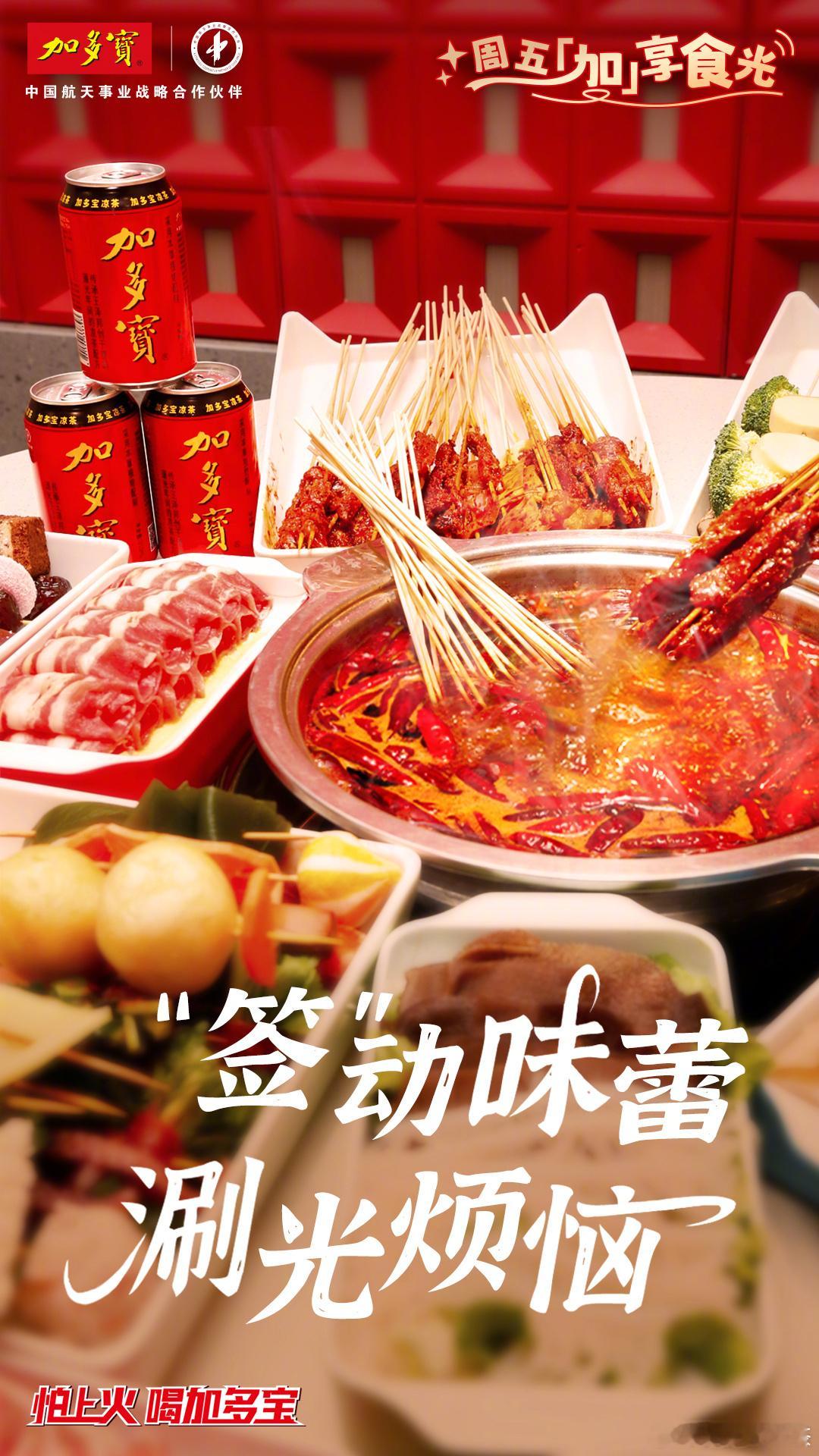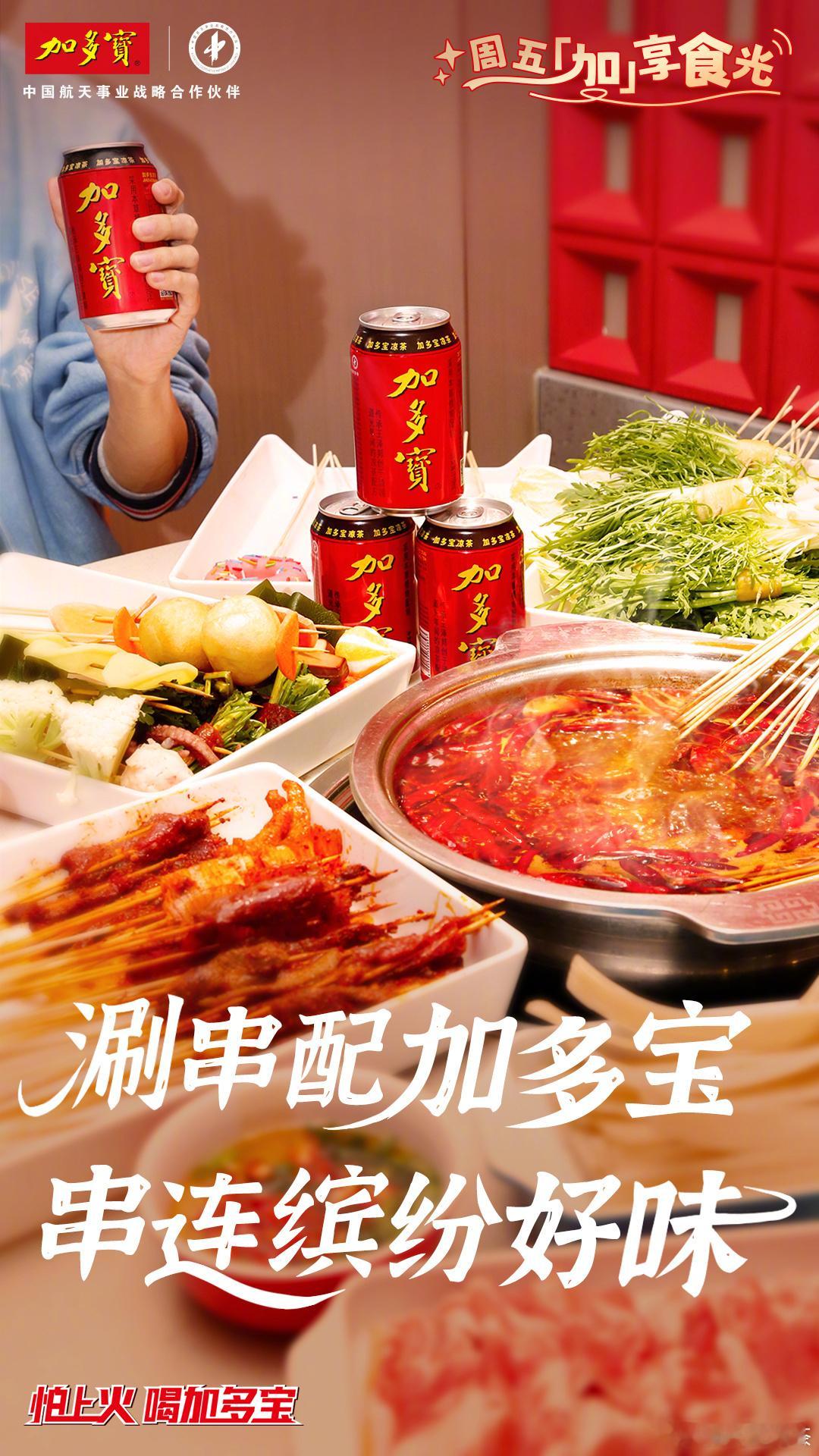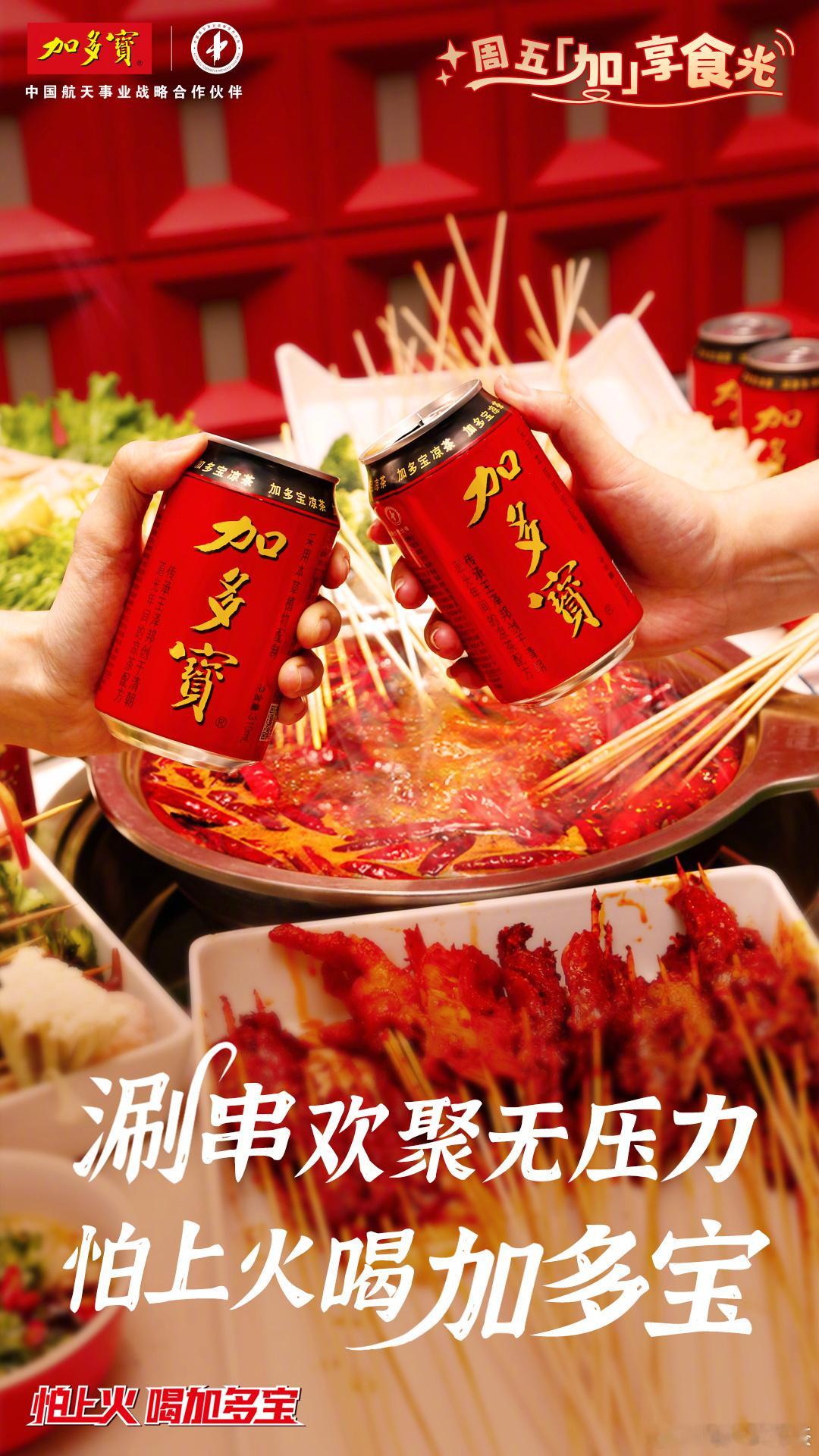 叮!周五卡!吃串串的基因动了!🍢【串串香局】火热组队中!滋啦滚熟的牛肉粒、吸饱红油汁的藕片、Q弹会爆浆的芝士丸……每串都是舌尖蹦迪的辣味暴击!🌶️辣到要喷火?莫慌!有加多宝,怕上火喝加多宝的含金量不断上升,畅快吃辣![干饭人]快来和加多宝一起解锁你的周五加享食光吧!