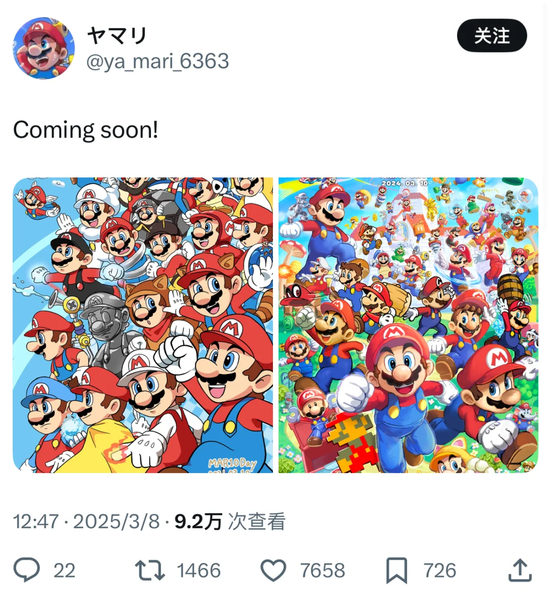 每年的3月10日被任天堂定为【马力欧日】,并且今年还是马力欧40周年,不知道这一天会不会有马力欧新作或者外传游戏的情报呢[皱眉R][皱眉R]