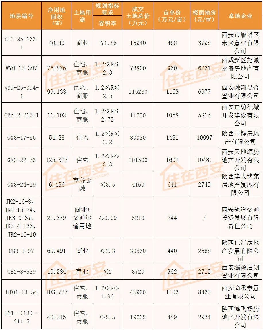 地块成交总价11750万元,亩单价1058万元/亩,楼面地价约5815元/㎡,摘地企业为西安市纺织城开发建设有限公司。
