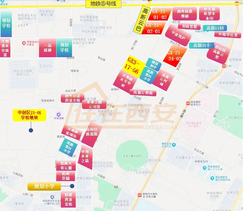 宗地位于高新丝路科学城,地块方正,在板块内容积率较低。地块周边地铁、公园、医疗等配套成熟。其南侧为天地源永安华府项目,东侧一路之隔是已开学的高新第51小学,地块北侧还有几宗住宅用地待供应。此外周边地铁6号线、15号线、国际医学中心、永安渠等配套完善。
