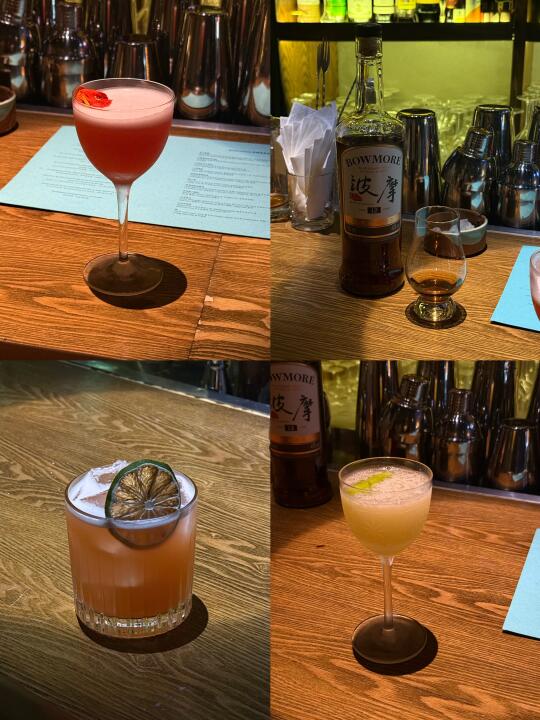 很有氛围的威士忌bar 去刷过几次了 店里调的酒都特别好喝!很推荐 根据季节不同 出的品也各有特色~ 调酒师拉莫斯金菲士拉的很不错👍 是适合和朋友来小酌的店