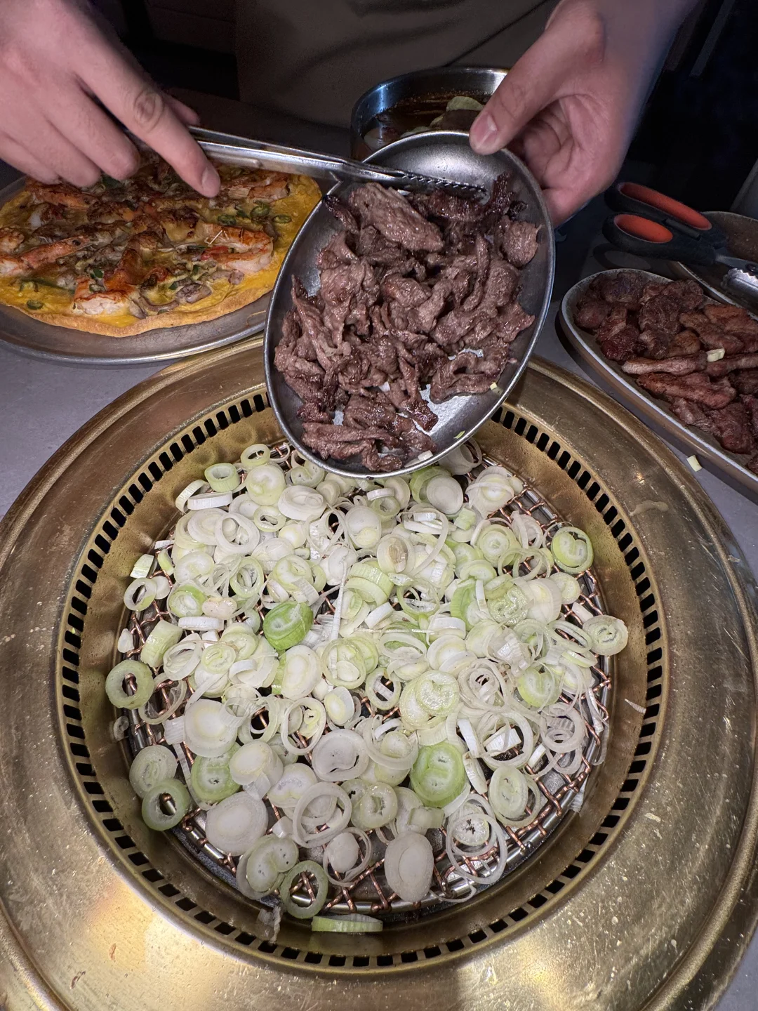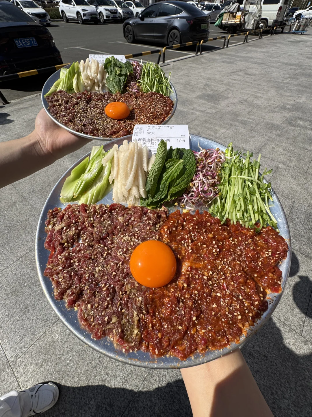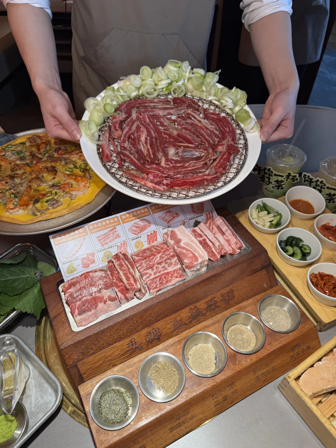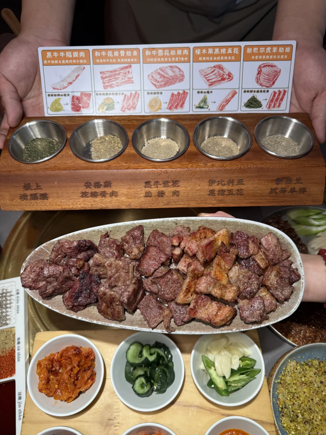 肉真的嘎嘎好 烟熏大葱烤牛肉 这个真的太盖了 还有五种肉的拼盘 每种都有不同的蘸料 真能研究 长春长春美食