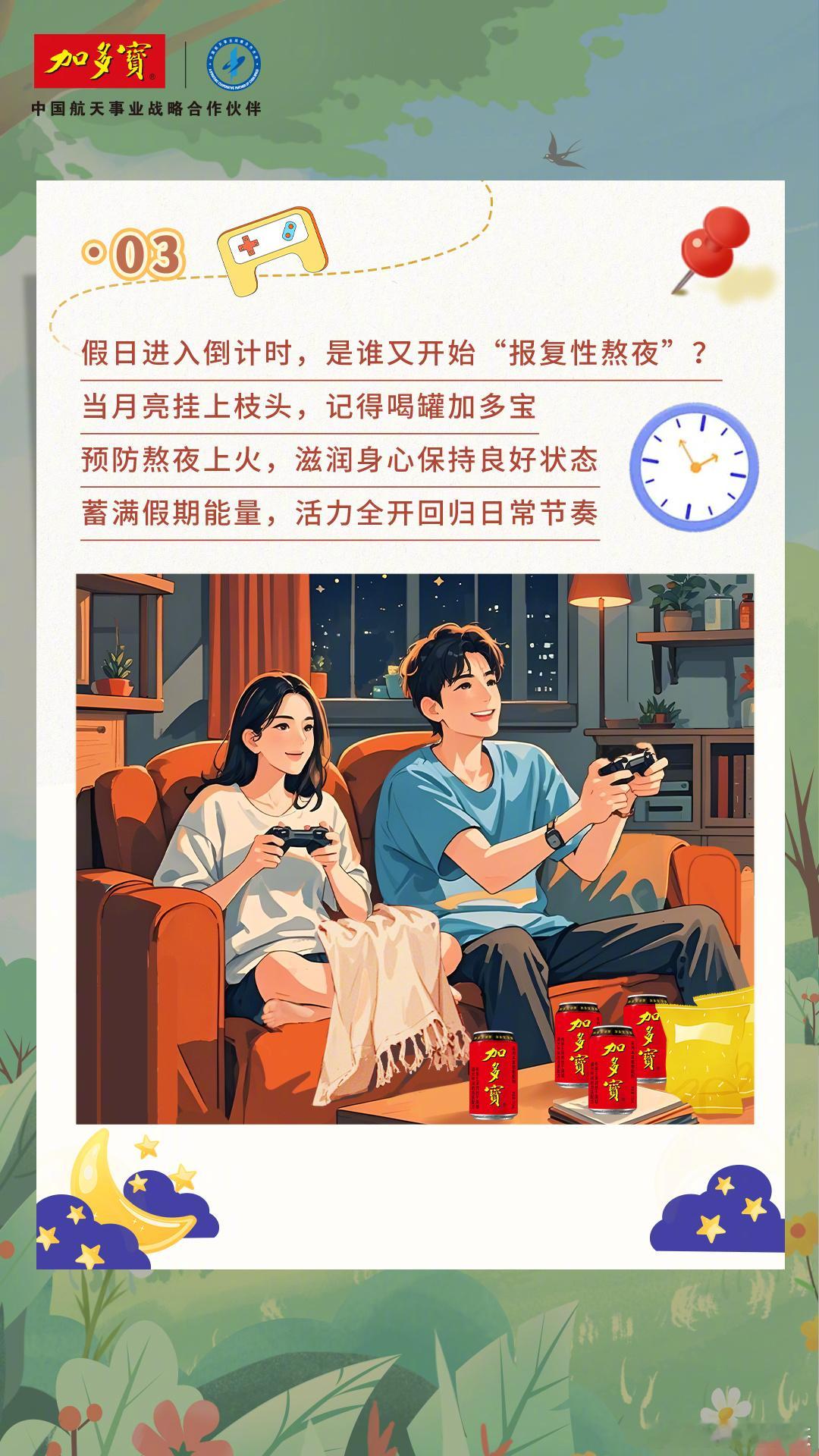 把时光调成「松弛系滤镜」,睡到自然醒再出发,出行遇到堵车也不怕🛣️,喝罐加多宝,本草清润入喉,预防焦躁上火;扎进烟火气满满的街巷,尽情享受热辣美味🌶️,怕上火喝加多宝 ;当假期余额告急时,记得备好加多宝,追剧、开黑预防熬夜上火,畅享快乐每一刻![送花花]五一假期 五一这样过