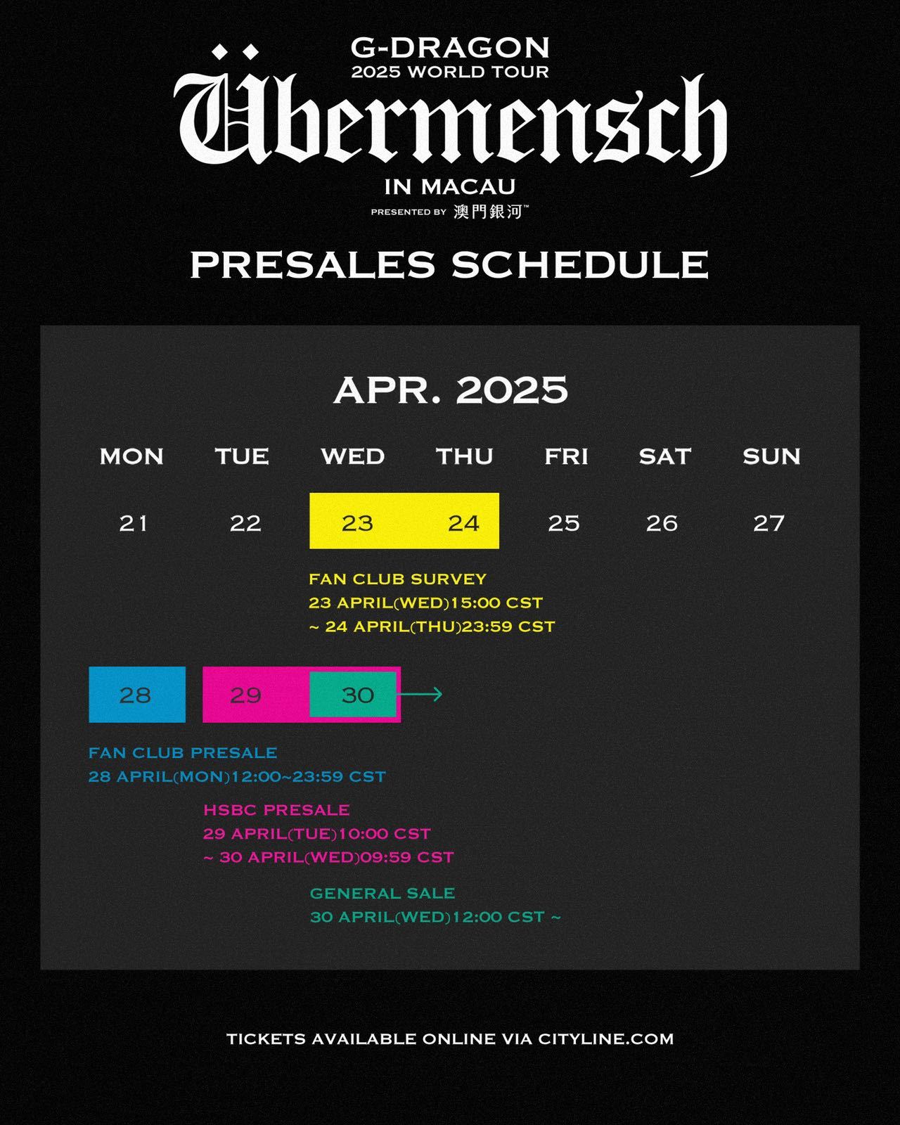权志龙澳门 谁抢到权志龙的演唱会门票了!G-DRAGON 2025 WORLD TOUR [Übermensch] IN MACAU, presented by Galaxy Macau™门票销售火爆,这就是FAM的爱!粉丝们无比期待GD这次带新专回归的舞台,这个6月在澳门银河综艺馆的视听盛宴,绝不能错过!