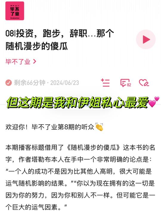 当然还有我自己的毕不了业播客 从去年5月份的第一期,那时候想辞职但还没敢下定决心
