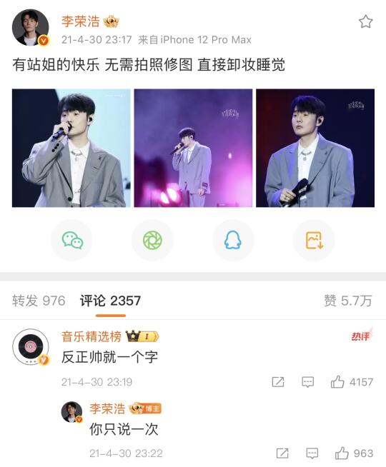 💙【2021.4.30】是舞台王者卸下光环后,对每一份镜头后默默付出的信任与依赖。无需亲自捕捉光影,因为最懂他的鲸鱼们,早已将每个帅气瞬间珍藏。