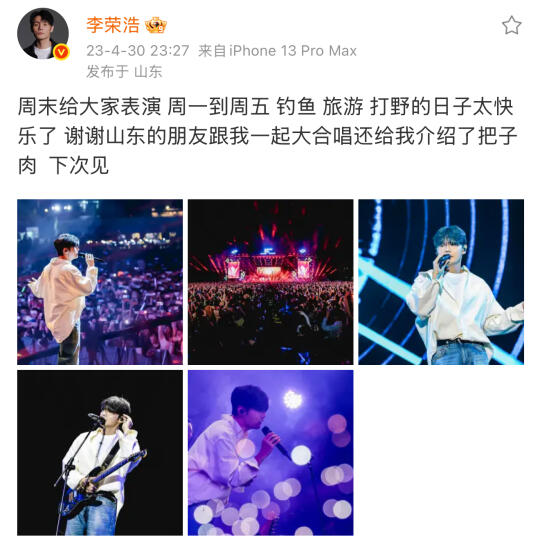 💙 【2023.4.30】济南•麦田音乐节。歌声里是倾情演绎的投入,话语间却流淌着自在的少年烟火气。是音乐人的热忱挥洒,也是生活家的自在逍遥。台上星光,台下烟火,皆是动人风景。